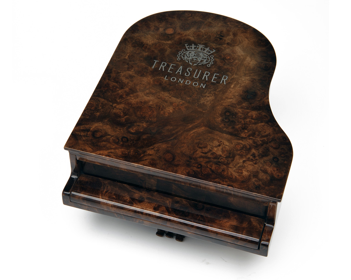 CHANCELLOR TOBACCO COMPANY LIMITED A NEW AND UNUSED BURL WALNUT BABY GRAND PIANO HUMIDOR