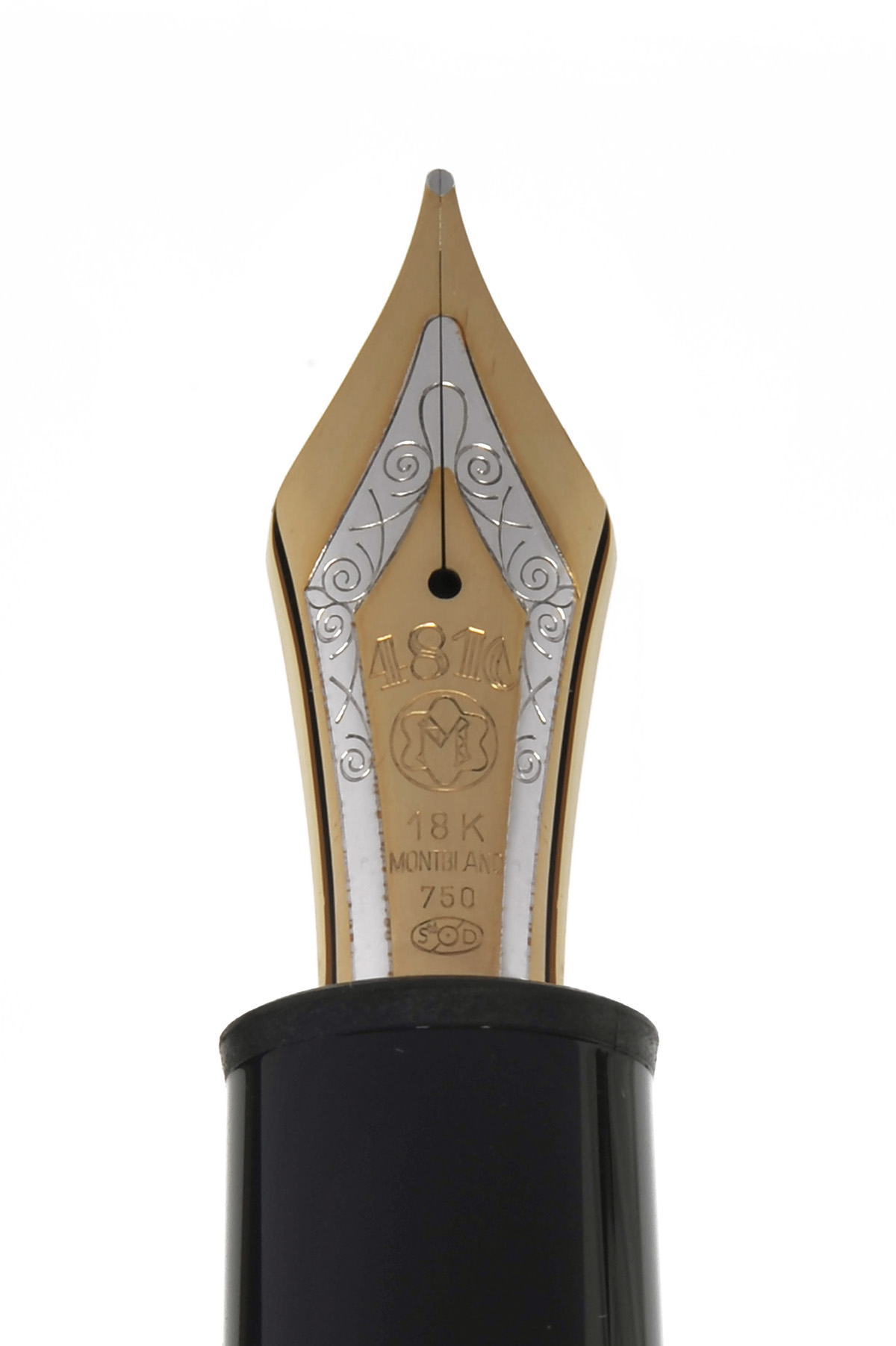 released in 2003 and comprising of a Meisterstück 149 piston fountain pen fitted with a medium 18 K gold nib with platinum inlay, the barrel and cap made of black precious resin inlaid with the Montblanc white star, gold-plated clip and rings, complete in a special solid acrylic case containing the pen and a bottle of Montblanc ink, the whole housed in its maker's display carton, unused, light storage marks to carton