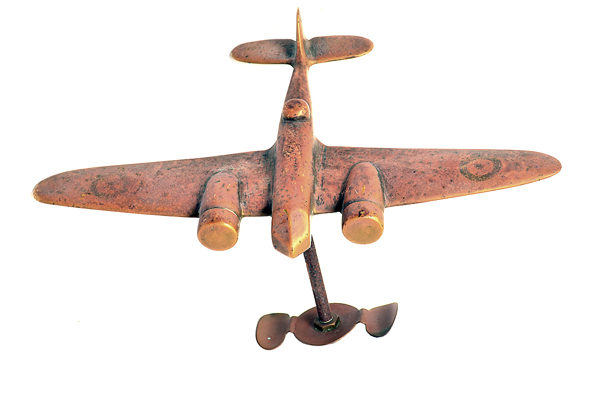 A BRASS DESK ORNAMENT IN THE FORM OF A BLENHEIM BOMBER AIRCRAFT, TOGETHER WITH A COPY OF DAS EHERNE HERZ BY GOEBBELS (4)