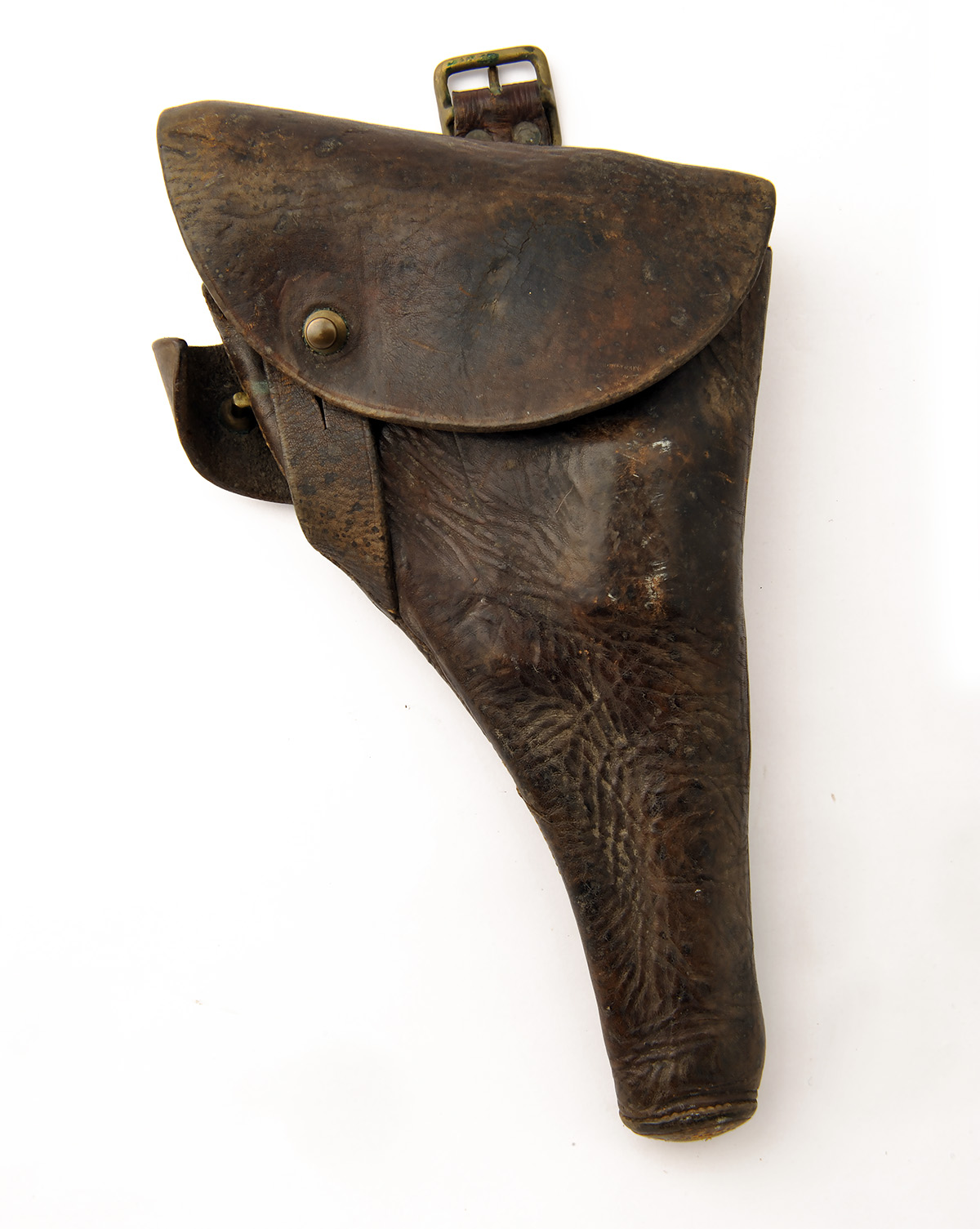 A .455 SIX-SHOT SERVICE REVOLVER SIGNED COLT, MODEL 'NEW SERVICE', serial no. 143542, for 1917, with blued 5 1/2in. barrel, fluted swing-out cylinder, solid frame and chequered hard-rubber grips, complete with a period leather holster (holster worn)