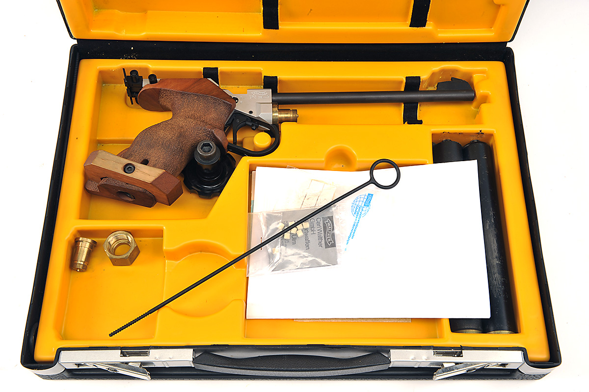 A CASED .177 CO2-POWERED MATCH AIR-PISTOL SIGNED WALTHER, MODEL CP2, serial no. 25166,