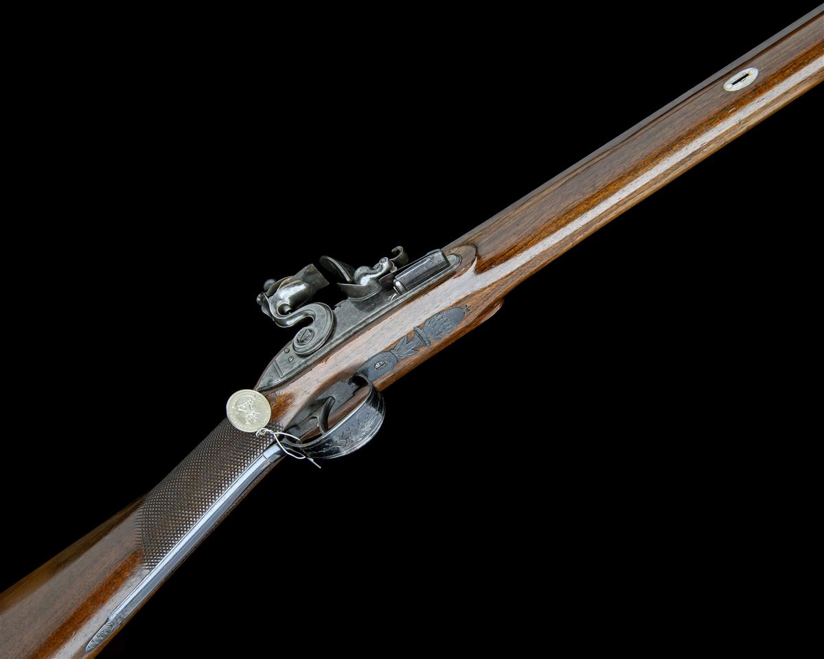 EX W. KEITH NEAL: JOHN MANTON, LONDON A RARE CASED 20-BORE FLINTLOCK SINGLE-BARRELLED SPORTING-GUN WITH INTERCHANGEABLE BARRELS, no...