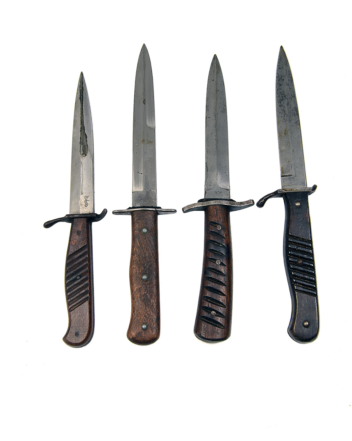 FOUR GERMAN WORLD WAR ONE AND TWO BOOT or TRENCH-KNIVES, ONE SIGNED 'HUGO KOLLER, SOLINGEN',