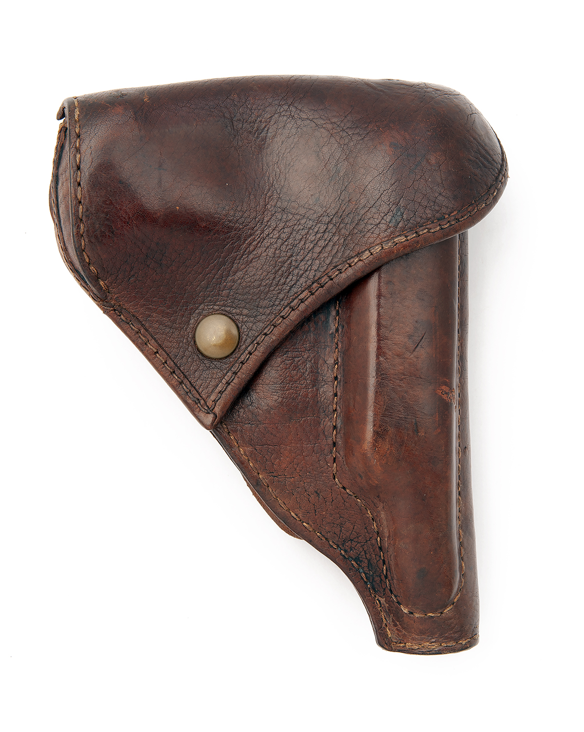 circa 1940, with concealed 3 5/8in. barrel, blued slide, cocking piece to rear, blued frame with exposed sear, guarded trigger and chequered black plastic grips, much original military blue finish remaining, in its brown leather service holster