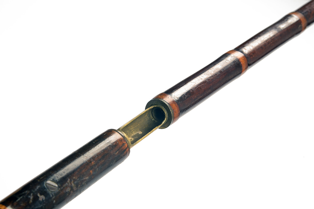A 7mm W/S WALKING STICK SHOTGUN, UNSIGNED, no visible serial number, with 23 1/4in. cane-covered barrel, twist and pull brass-lined action and angled staghorn grip