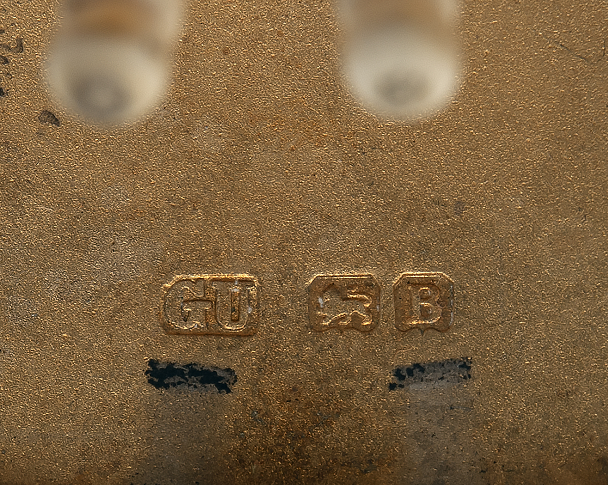 GEORGE UNITE A RARE STERLING SILVER CLAMSHELL EIGHT PEG PLACEFINDER,