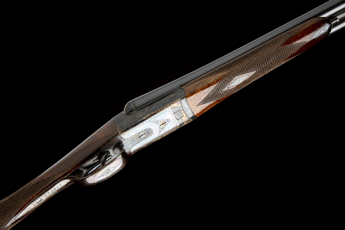 dated 1980, 27in. nitro chopperlump barrels, 2 3/4in. chambers, bored approx. 1/4 and 3/4 choke, automatic safety, removable striker discs, border engraving, retaining much original colour-hardening and finish, 14 1/2in. figured stock, weight 5lb. 10oz.