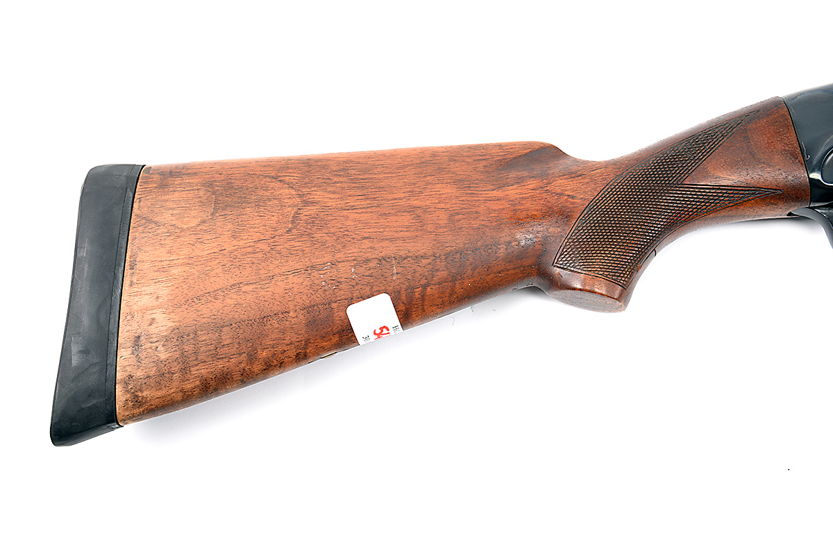 TULA 12-BORE 'MU-21-12' SEMI-AUTO SHOTGUN, serial no. N4703, circa 1974, restricted magazine, 29 1/2in. nitro barrel with 7mm raised ventilated matt rib, 2 3/4in. chamber, bored approx. full choke, sidelever safety, border and acanthus leaf engraving, blacked finish, 14 1/2in. pistolgrip stock including rubber recoil pad, with cheekpiece, sling swivels