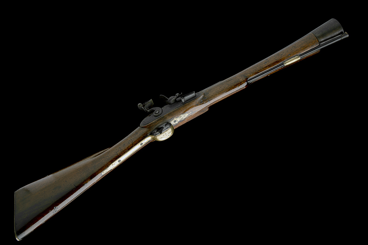 circa 1795, with heavy gauge 17 3/4in. two-stage barrel, the forward section flaring continuously from the intersection, registration number to top-flat, flat curved bevel-edged lock with rounded and engraved stepped tail and signed 'BOYD LIM'K' below the pan, borderline engraved swan-necked cock, semi handrail full-stock (some filled worm) with engraved brass furniture, the registration number repeated to the top-spur of heel-plate and brass tipped ebony ramrod, overall length 34in., weight approximately 8lbs.