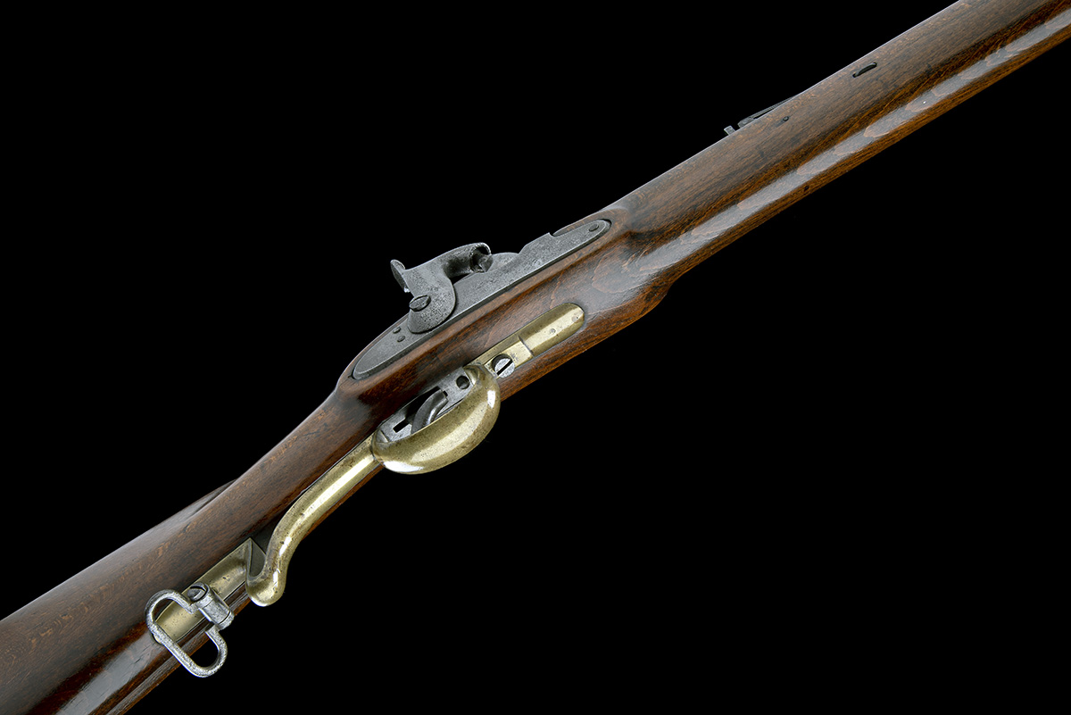 A .730 PERCUSSION SERVICE-RIFLE SIGNED BERD FRUWIRTH, MODEL 'LORENZ' RIFLE, no visible serial number, circa 1861, possibly converted from flintlock, with octagonal to round iron 33 1/4in. rifled barrel signed 'BERD. FRUWIRTH' and marked '2C' over '17', applied blade fore-sight, dove-tailed folding rear-sight at breech-end, plain bevel-edged lock, walnut three-quarter stock with heavy iron furniture, raised cheek-piece, cup-ended iron ramrod, some cleaning and mild staining