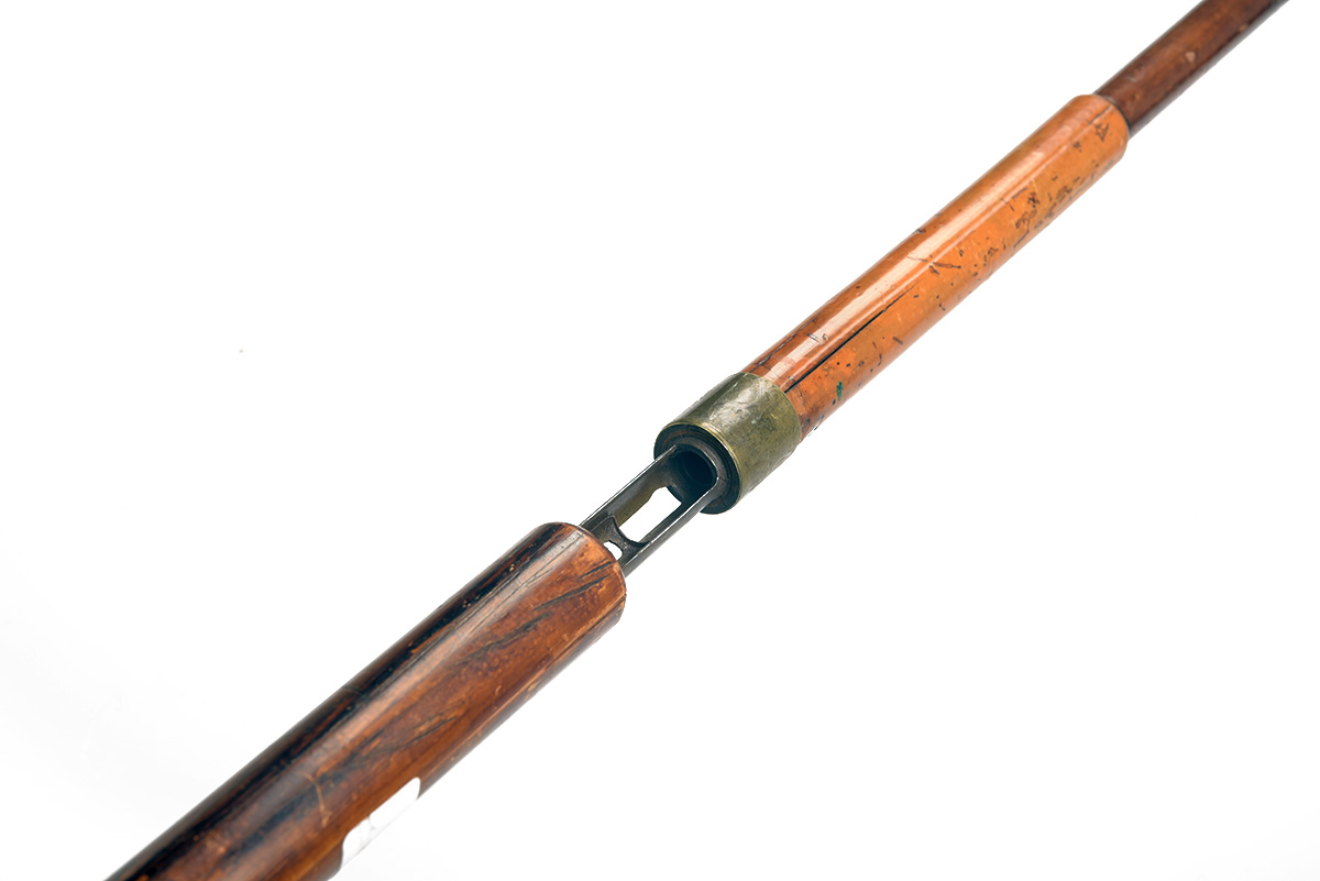 A 7mm (W/S) WALKING STICK SHOTGUN, UNSIGNED, no visible serial number, with 24 1/2in. cane-covered barrel, cane covered action (at fault) and angled staghorn handle