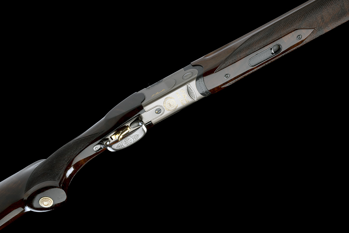 dated 1997, 29 1/2in. nitro barrels with 12mm ventilated matt top-rib, ventilated mid-rib, hold-open toplever (hold-open at fault), 3in. chambers, multichokes (with spares), manual safety with integral barrel-selector switch, adjustable gold-washed single trigger, border engraving, the makers name and model designation in gold-inlaid, satin finish, 14 3/4in. figured pistolgrip stock, with palm swell, including 1 1/8in. rubber recoil pad, in its makers case with paperwork and some accessories