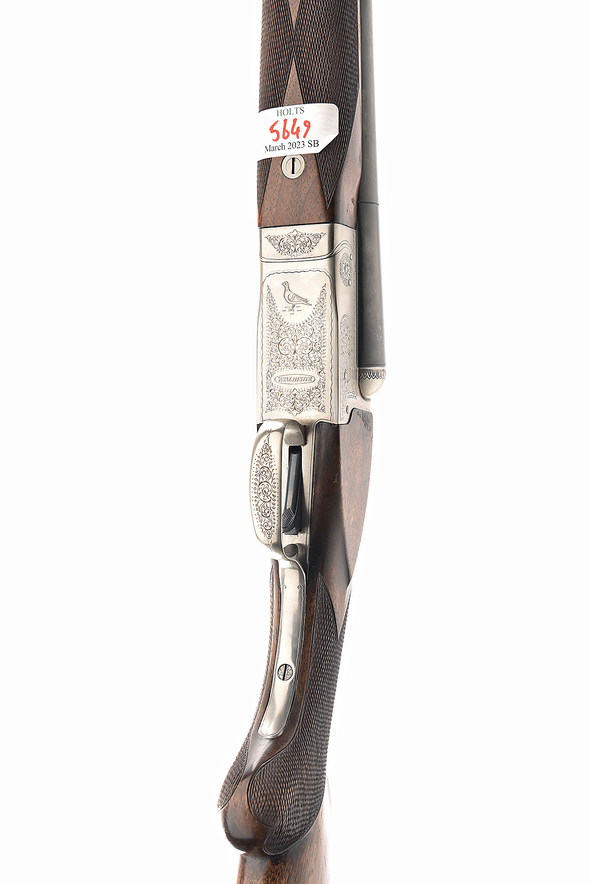 WINCHESTER 12-BORE (3IN.) 'MODEL 23 XTR PIGEON GRADE' SINGLE-TRIGGER BOXLOCK EJECTOR, serial no. PWK001242, circa 1990, 28in. nitro reproved (in 2023) barrels with 8mm raised ventilated matt rib, 3in. chambers, bored approx. imp. cyl. and 1/2 choke, manual safety with integral barrel-selector switch, chequered trigger, border and partial scroll engraving, coin finish, 14 1/4in. semi-pistolgrip stock including recoil pad, weight 6lb. 14oz.