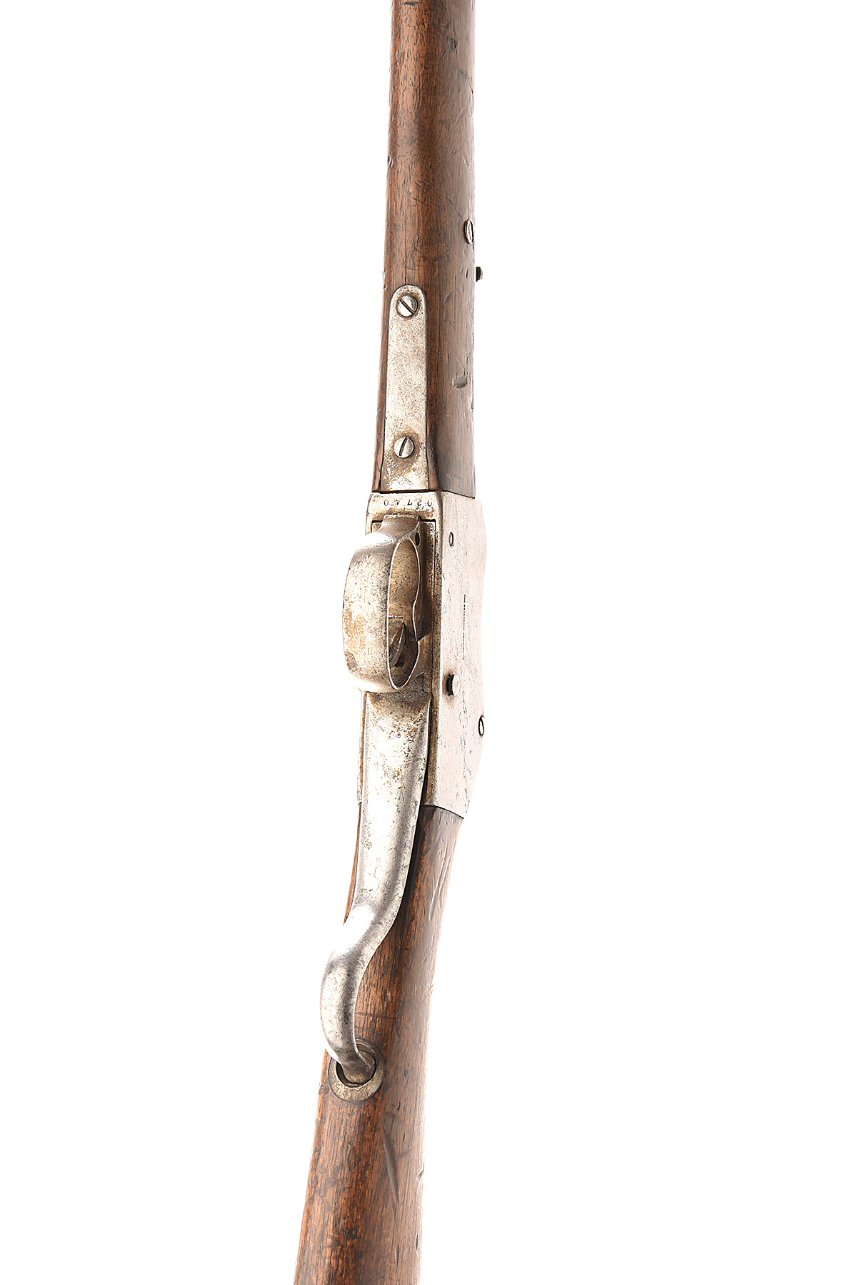 A .577/450 MARTINI HENRY CAVALRY CARBINE SIGNED BRAENDLIN ARMOURY, serial no. 92740, circa 1880, with 21in. Birmingham proofed barrel fitted with a wing protected blade front-sight, and carbine pattern ladder rearsight, the knoxform stamped with the crossed pennants trademark of the Braendlin Armoury, and the action stamped on the left "THE BRAENDLIN ARMOURY CO", iron mounted two piece walnut stock, the barrel and action to a grey patina, complete with original rod, the stock with some wear and bruising commensurate with use.