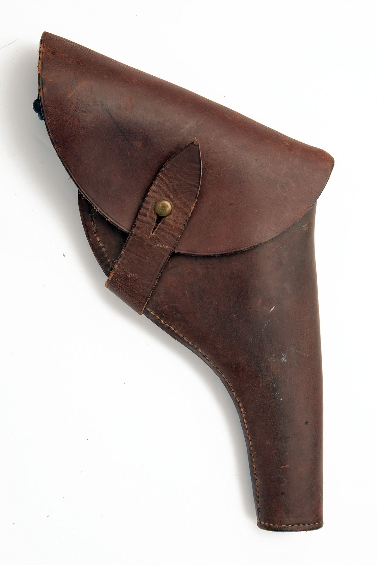 A .38-200 ENFIELD No2MKI SERVICE-REVOLVER, serial no. F7726, dated for 1939, with blacked 5in. barrel, break-open frame, fluted cylinder, hammer retaining its spur and grooved walnut grips, in a full-flap leather service holster