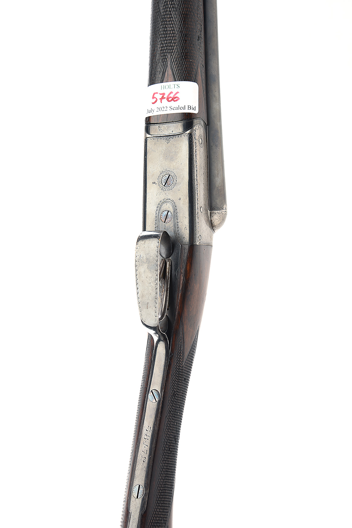 ARMY & NAVY 12-BORE BOXLOCK NON-EJECTOR WITH PAGE-WOOD PATENT TOPLEVER, serial no. 38472, circa 1900, 29 3/4in. nitro reproved barrels, the rib engraved 'ARMY & NAVY C.S.Ld. LONDON.', 2 1/2in. chambers, bored approx. true cyl. and 1/4 choke, treble-grip action, toplever engraved 'T. PAGE WOOD PATENT', bifurcated thumb catch with folding peepsight, automatic safety with inlaid 'SAFE' detail, border engraving, 14 1/2in. stock (swept for central vision), fore-end wood split