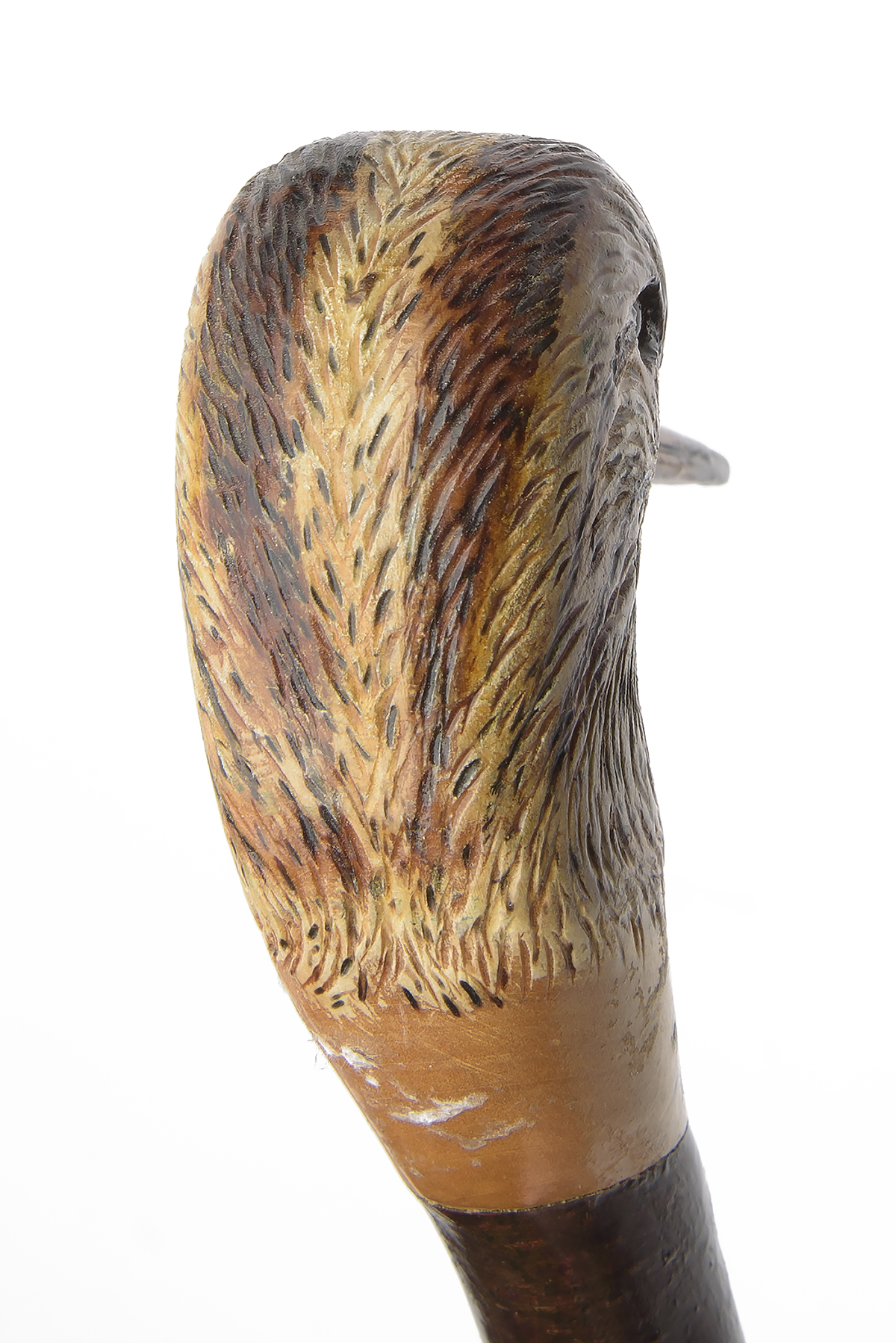 measuring approx. 46 5/8in. in length, the top carved and painted in the form of a woodcock