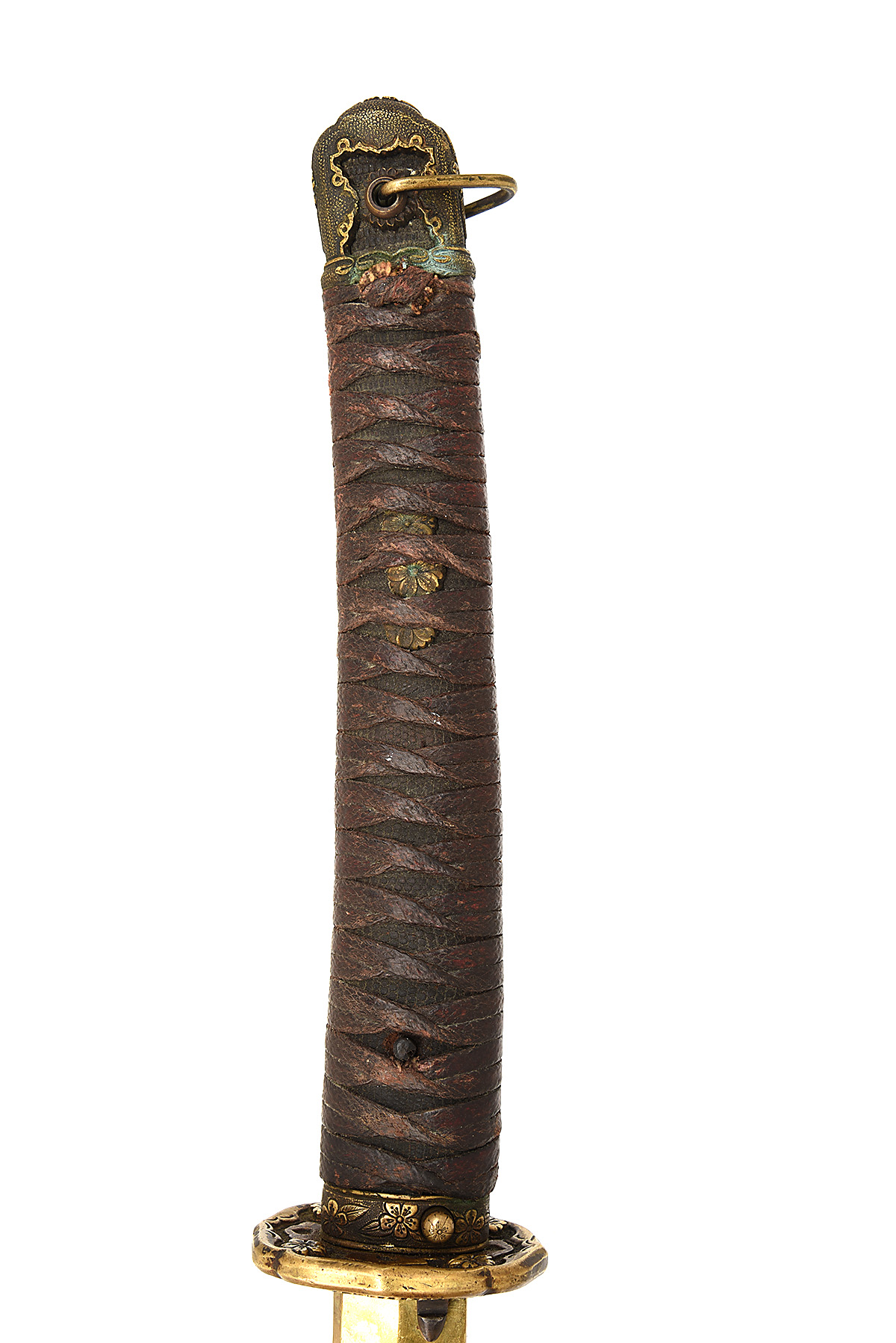 A JAPANESE SHIN-GUNTO MOUNTED OFFICER'S SWORD, of World War Two style, with polished and cleaned 26 1/2in. blade (edge removed), leather bound hilt and iron scabbard