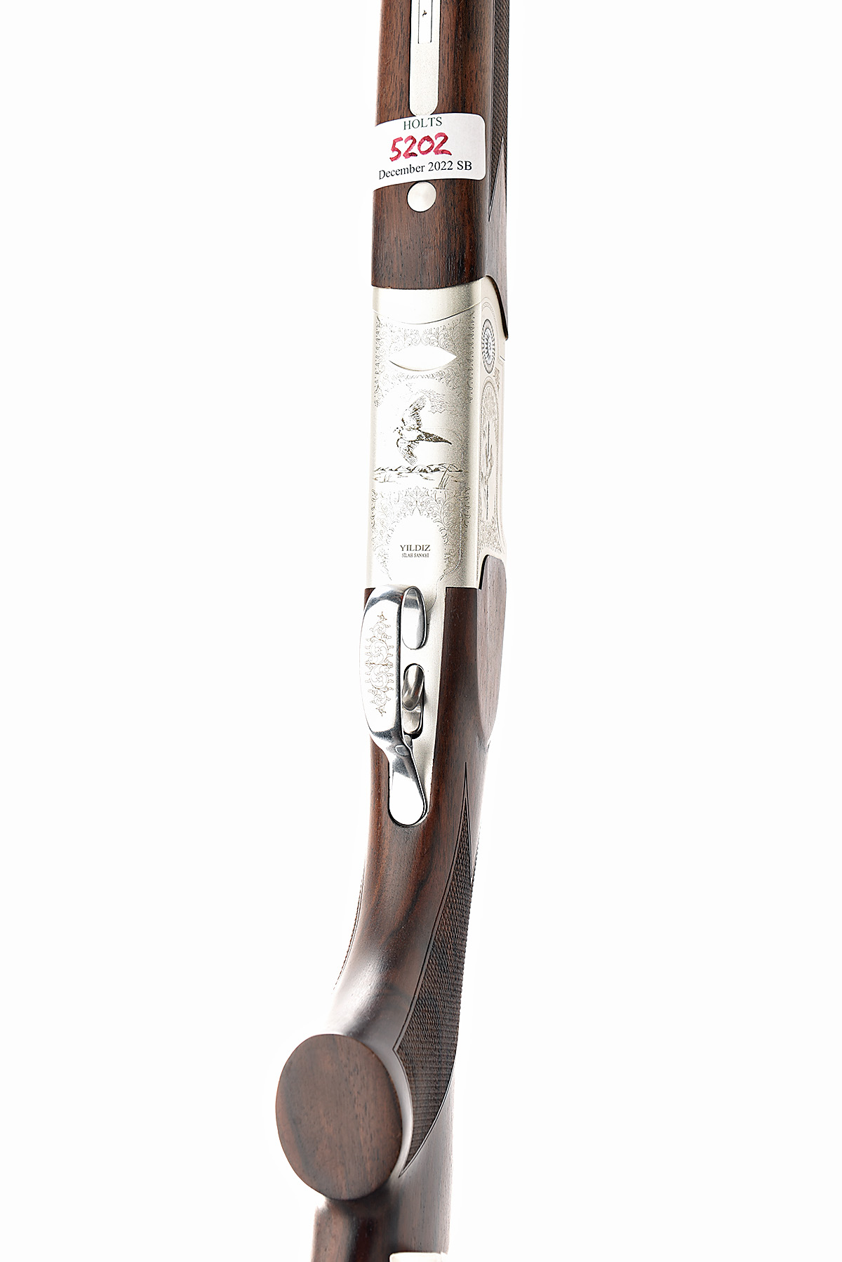 YILDIZ 20-BORE (3IN.) SINGLE-TRIGGER OVER AND UNDER EJECTOR, serial no. U52784, dated 2017, 26in. nitro barrels with ventilated mid-rib and 7mm ventilated matt top-rib, multichokes (with spares), hold-open toplever, automatic safety with integral barrel selector switch, partial acanthus scroll engraving surrounding game vignettes, 13in. pistolgrip stock including 1/2in. rubber recoil pad, 5lb. 14oz.