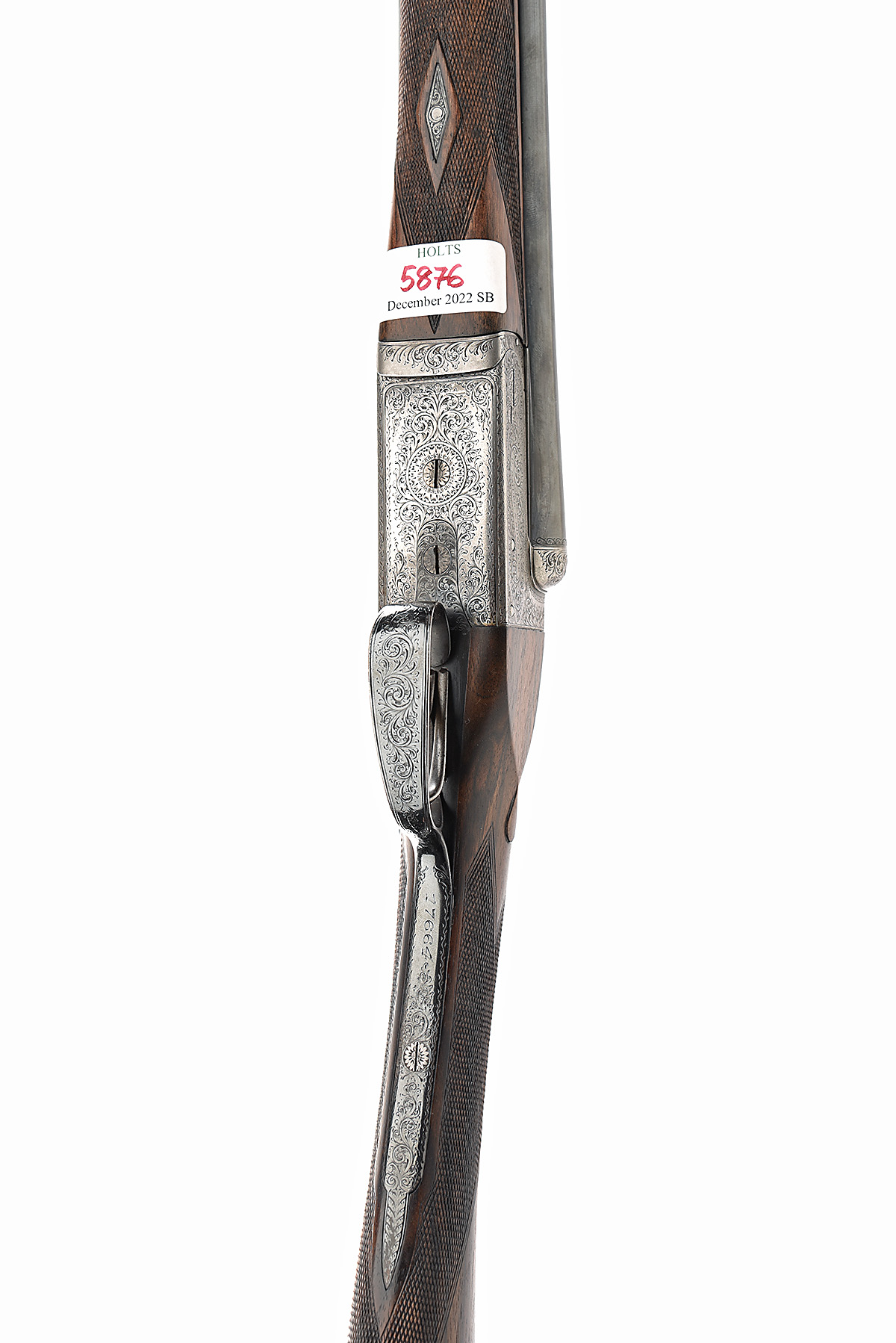 CHARLES SMITH & SONS (NEWARK) LTD. 12-BORE BOXLOCK EJECTOR, serial no. 17664, circa 1954, 28in. nitro reproved barrels, the rib engraved 'CHARLES SMITH & SONS (NEWARK) LTD.', 2 1/2in. chambers, bored approx. 1/2 and full choke, automatic safety with gold-inlaid 'SAFE' detail, border and acanthus scroll engraving, 14 3/4in. figured stock, weight 6lb. 6oz.