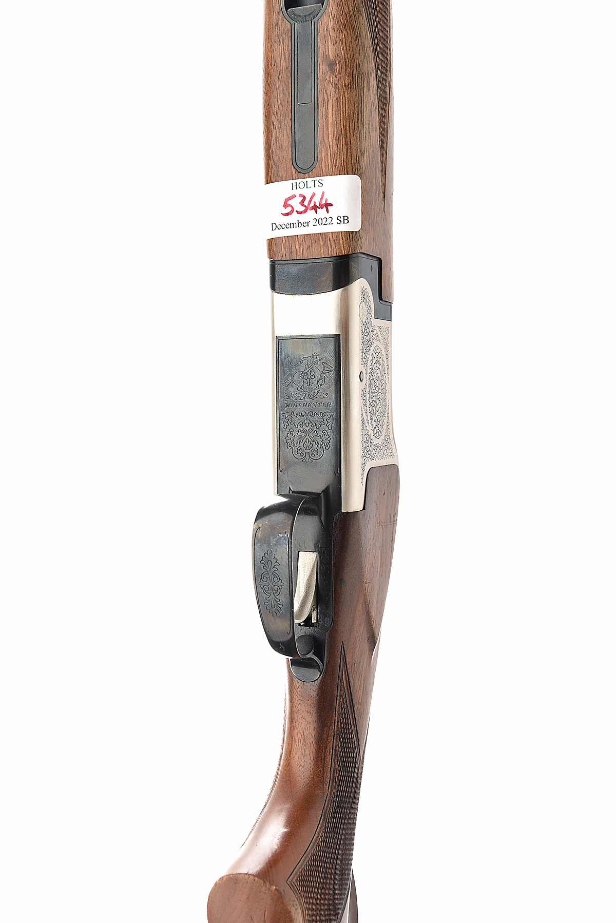 WINCHESTER 12-BORE 'MODEL 91' SINGLE-0TRIGGER OVER AND UNDER EJECTOR, serial no. WK250843, dated 1985, 28in. nitro barrels with 7mm ventilated matt top-rib, 2 3/4in. chambers, bored approx. 1/2 and full choke, hold-open toplever, manual safety with integral barrel selector switch, acanthus scroll engraving, 14in. pistolgrip stock including buttplate, weight 7lb.