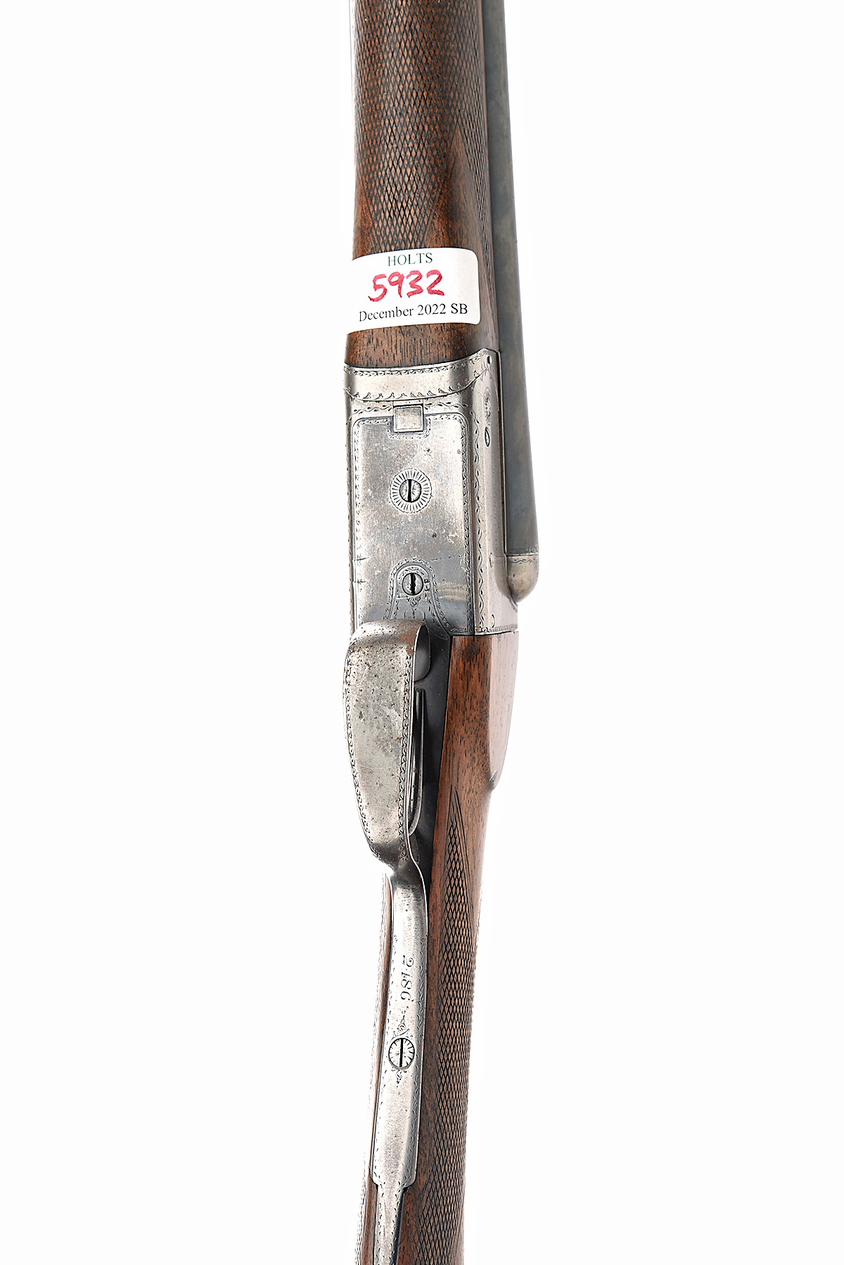 K.D. RADCLIFFE 12-BORE BOXLOCK EJECTOR, serial no. 2486, circa 1920, 28in. nitro barrels, rib engraved 'K.D. RADCLIFFE. 150. HIGH STREET. COLCHESTER.', 2 1/2in. chambers, bored approx. 1/4 and 3/4 choke, treble-grip action, removable striker discs, automatic safety, border engraving, 13 1/2in. stock, weight 6lb. 3oz.