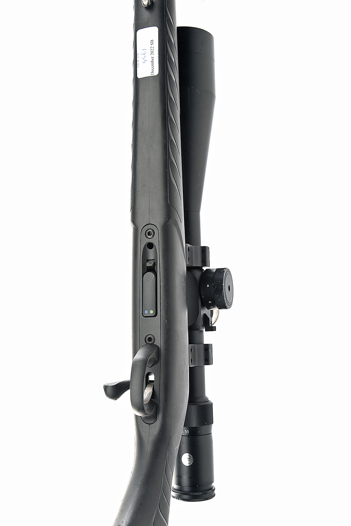 SAKO .22 L.R. 'P04R' BOLT-MAGAZINE SPORTING RIFLE, serial no. D24321, 22in. unsighted nitro barrel, threaded for sound moderator, fitted with a Nikko Stirling 10-50x60 telescopic sight, manual safety, detachable magazine, synthetic pistolgrip stock, sling eyes