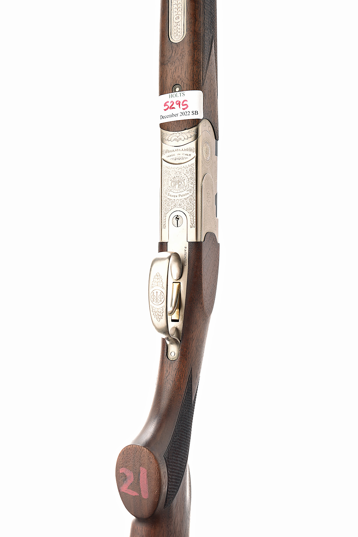 P. BERETTA 20-BORE (3IN.) 'SILVER PIGEON' SINGLE-TRIGGER OVER AND UNDER EJECTOR, serial no. M14871B, dated 1996, 28in. nitro barrels with 6mm ventilated matt top-rib, 3in. chambers, bored approx. imp cyl. and 1/4 choke, hold-open toplever, automatic safety with integral barrel selector switch, gold-washed single trigger, acanthus scroll engraving, matt silver finish, 13in. pistolgrip stock including 1/2in. rubber recoil pad, weight 5lb. 15oz.