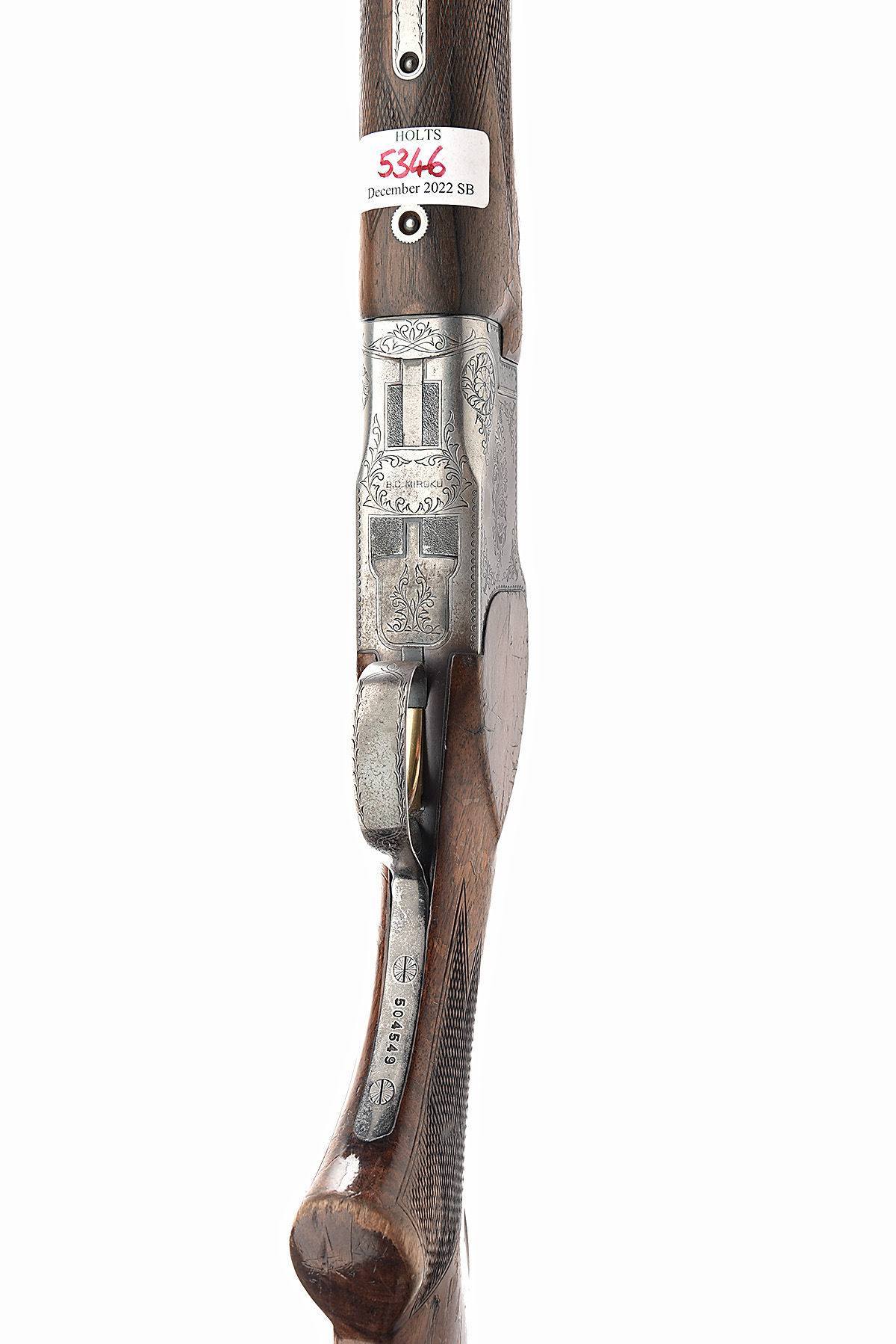 B.C. MIROKU 12-BORE SINGLE-TRIGGER OVER AND UNDER EJECTOR, serial no. 504549, circa 1969, 28in. nitro barrels with 7mm ventilated matt top-rib, 2 3/4in. chambers, bored approx. imp. cyl. and full choke, hold-open toplever, automatic safety with integral barrel selector switch, gold-washed single trigger, border and partial scroll engraving, 14in. pistolgrip stock, weight 7lb. 4oz., worn overall