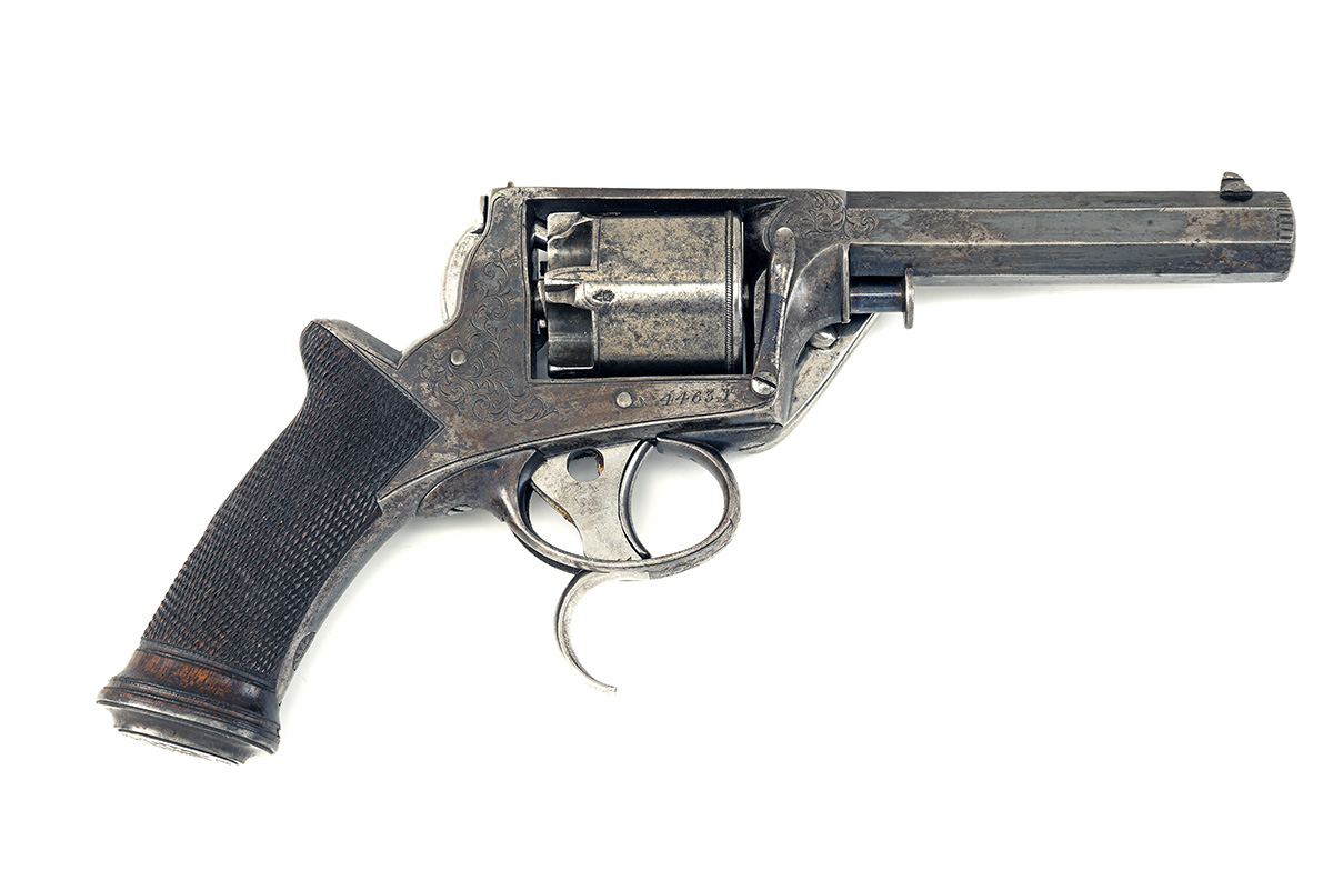 A CASED 80-BORE TRANTER SECOND MODEL DOUBLE TRIGGER REVOLVER, CIRCA 1857, serial no 4463 T,