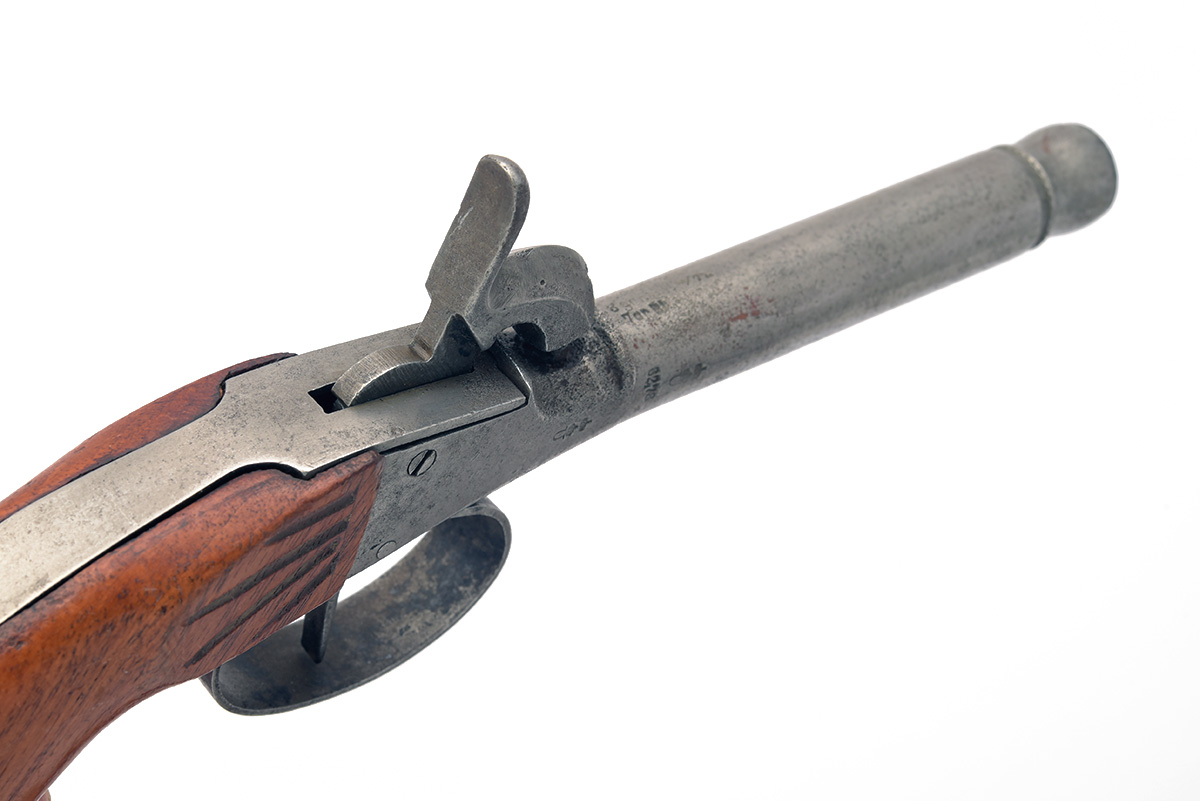 A RIFLED 50-BORE PERCUSSION POCKET-PISTOL, UNSIGNED, no visible serial number,