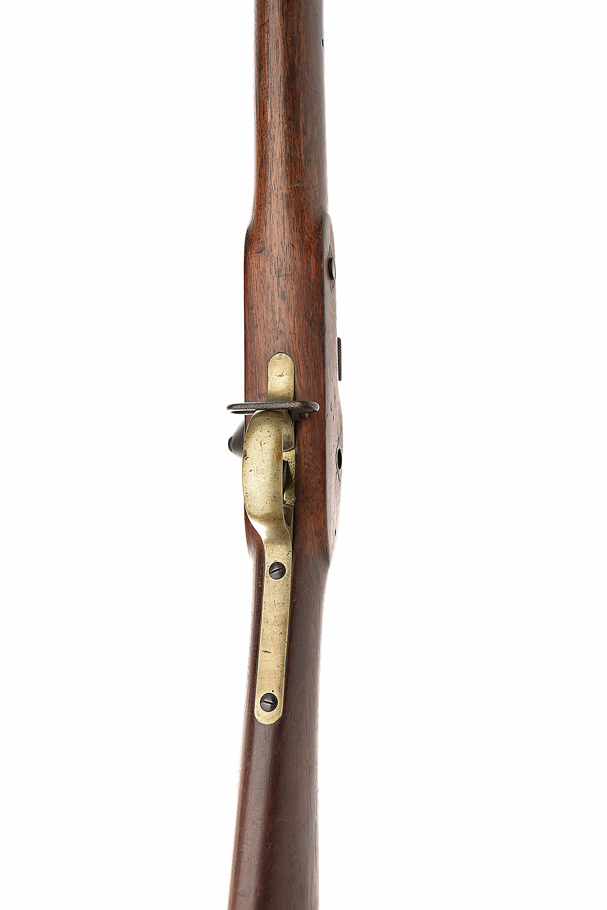 A .577 SNIDER MK II** THREE BAND VOLUNTEER BREECH-LOADING RIFLE BY THE LONDON ARMOURY COMPANY CIRCA 1868, NO VISIBLE SERIAL NUMBER, with 36 1/2. Birmingham proofed barrel rifled with three grooves block and blade front-sight, standard P53 style ladder rear-sight, the breech with acknowledgement to Snider's patent, the lock stamped with the Crown G.R. cypher on the tail and '1863 / L. A. Co' to the centre, regulation brass mounted full walnut stock the butt impressed with a London Armoury Co. roundel dated 1863, this rifle was originally made for private sale in 1863 and later converted to a Snider breech-loader, complete with sling swivels and rod,