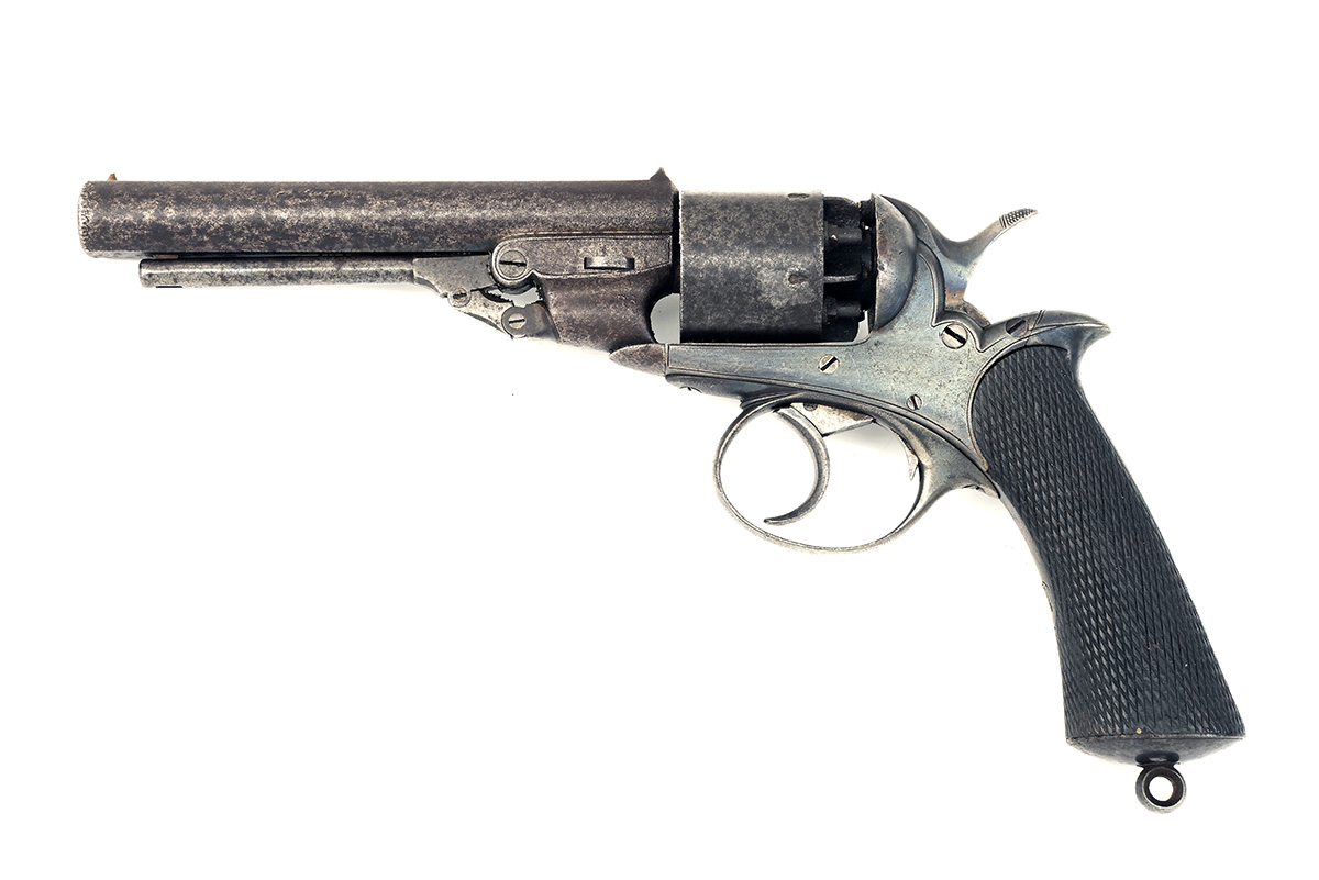 Provenance: The Daw revolver is one of the rarer of the successful British percussion revolver designs/ The patentees were Charles Pryse and Paul Cashmore, manufacture being carried out by the Birmingham firm of Pryse & Redman. George Daw bought the sole rights around 1858 and the revolver became known as the Daw revolver. It was a practical and reliable weapon and well thought of by experts of the day. The famous Times correspondent W. H. Russell wrote in glowing terms about its merits and is believed to have owned one, as did the great Italian patriot Garibaldi, presented to him by Daw in 1864.