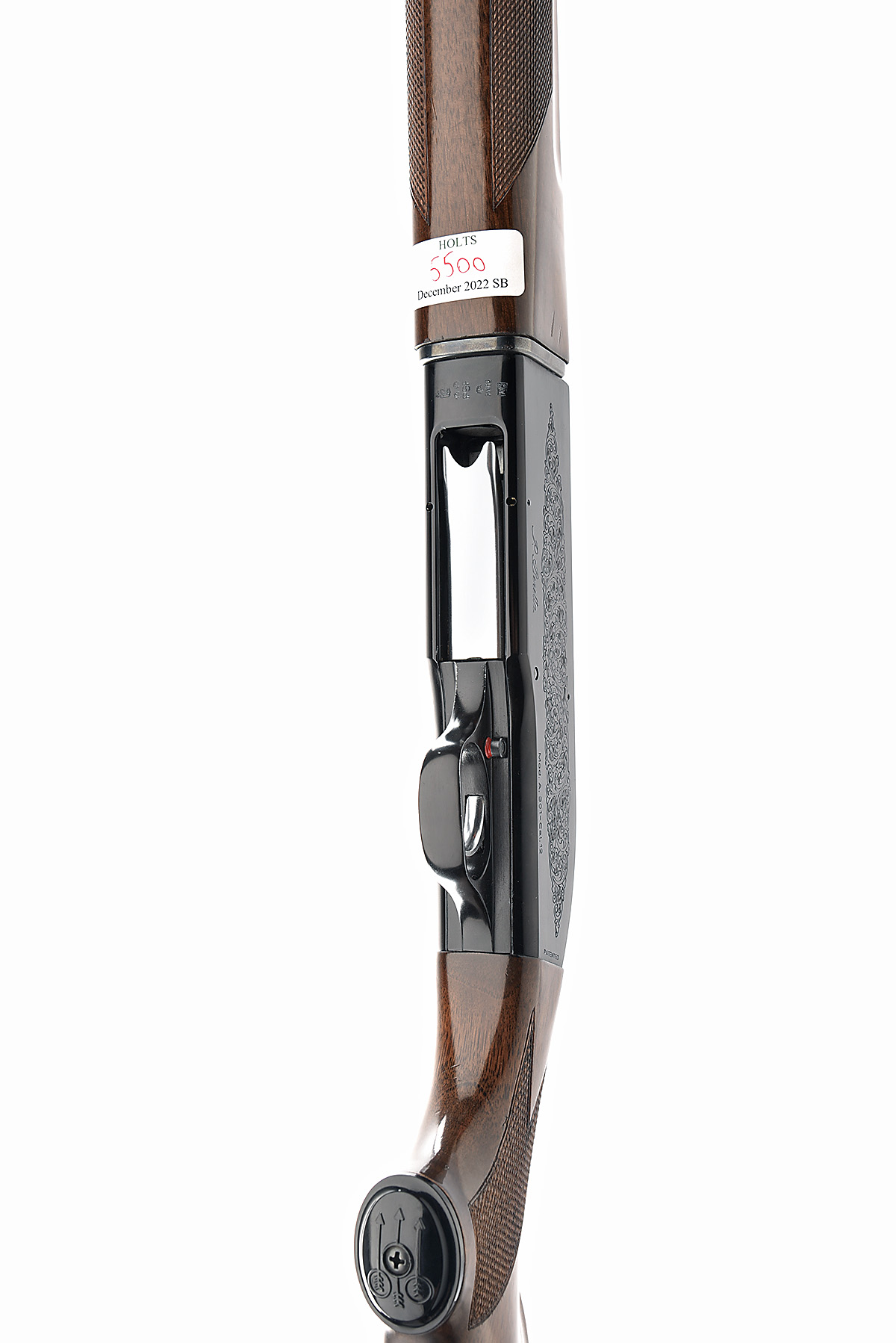 P. BERETTA 12-BORE 'MODEL A. 301' SEMI-AUTO SHOTGUN, serial no. C48047E, dated 1977, restricted magazine, 28in. nitro barrel with 7mm ventilated matt rib, 2 3/4in. chamber, bored approx. 1/2 choke, serial no. D28209F, manual push-button safety, magazine cut-off switch, blacked action with acanthus scroll engraving, 15in. pistolgrip stock including rubber recoil pad, weight 7lb. 4oz.