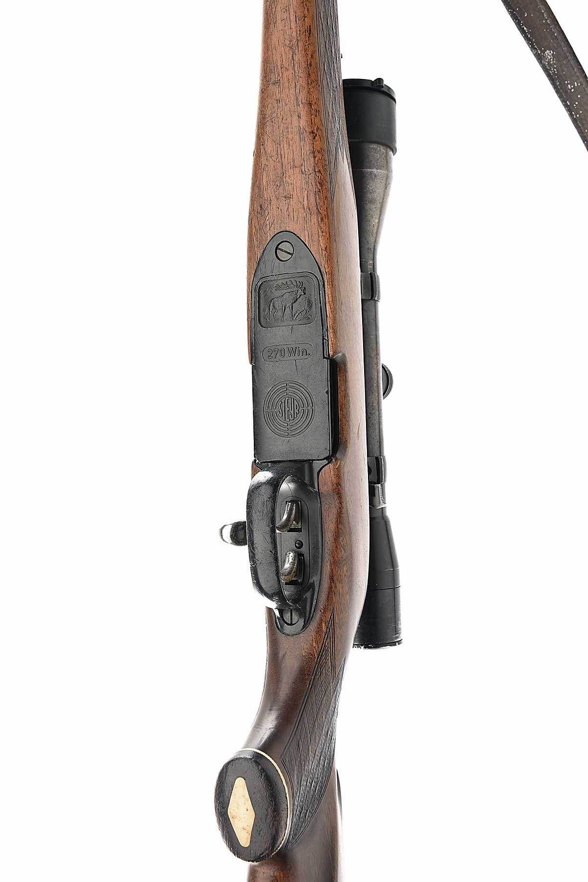 STEYR DAIMLER-PUCH .270 WIN. 'MANNLICHER MOD M' BOLT-MAGAZINE SPORTING STUTZEN RIFLE, serial no. 67760, circa 1979, 19 3/4in. nitro barrel, ramp-mounted bead fore-sight, leaf rear-sight, fitted with a Khales Wein Helia Super telescopic sight, manual safety, set trigger, well-figured pistolgrip full-length stock with ventilated recoil pad, cheekpiece, leather sling