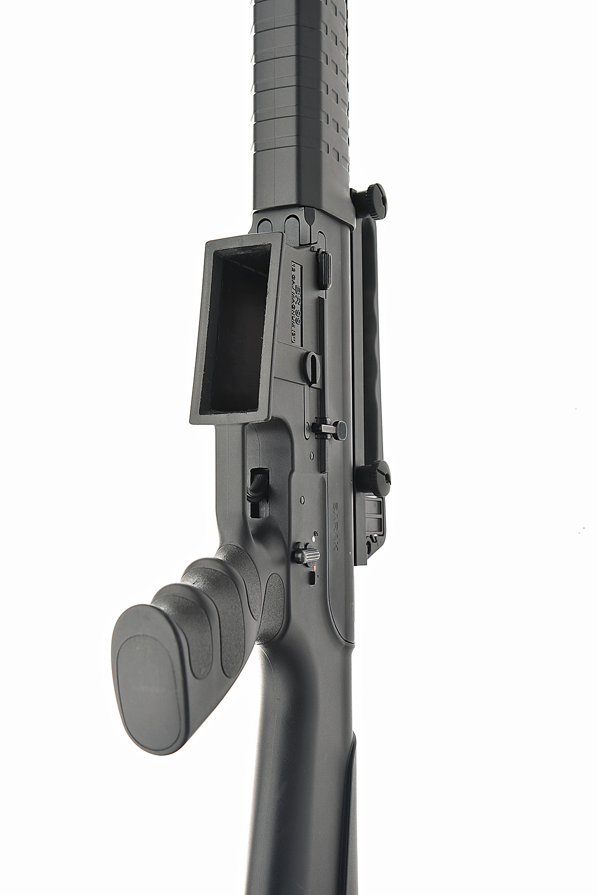 AN F.A.C. BARAK 12-BORE (3IN.) 'BR 99' SEMI-AUTO SHOTGUN, serial no. 13-02355, circa 2013, 24in. superior proofed nitro barrel, 3in. chamber, multichoke (missing, no spares), manual safety, detachable box magazine with 3 spares, 14 1/2in. stock including rubber recoil pad, in a canvas slip