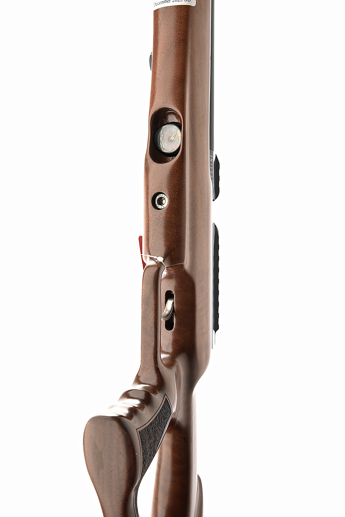 A VIRTUALLY NEW AND UNUSED .22 PRE-CHARGED PNEUMATIC AIR-RIFLE, SIGNED ASELKON INTERARMS 'MODEL RAVELLO RX6', serial no. MX21024965, 22 1/2in. unsighted barrel, threaded for sound moderator with muzzle thread cap, manual side safety, receiver with accessory rail, detachable magazine (with spare), two pressure gauges (low, but holding pressure), thumbhole pistolgrip halfstock, 14 1/2in. pull including rubber recoil pad, in its full-length ABS case with filler adapter and instructions