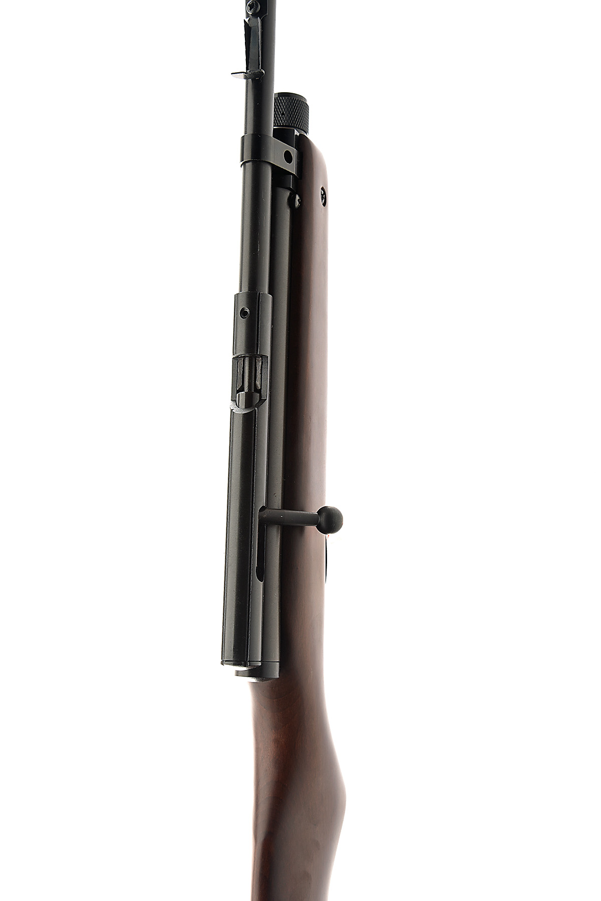 A BOXED .22 CO2-POWERED AIR-RIFLE, SIGNED SMK 'MODEL XS79CO2-88', no visible serial number, 21 1/4in. barrel with ramped blade fore-sight, open rear sight, blued finish, manual safety, bolt-action receiver, pistolgrip halfstock, 14 1/2in. pull including rubber recoil pad, appearing little used in its makers carton with instructions but untested
