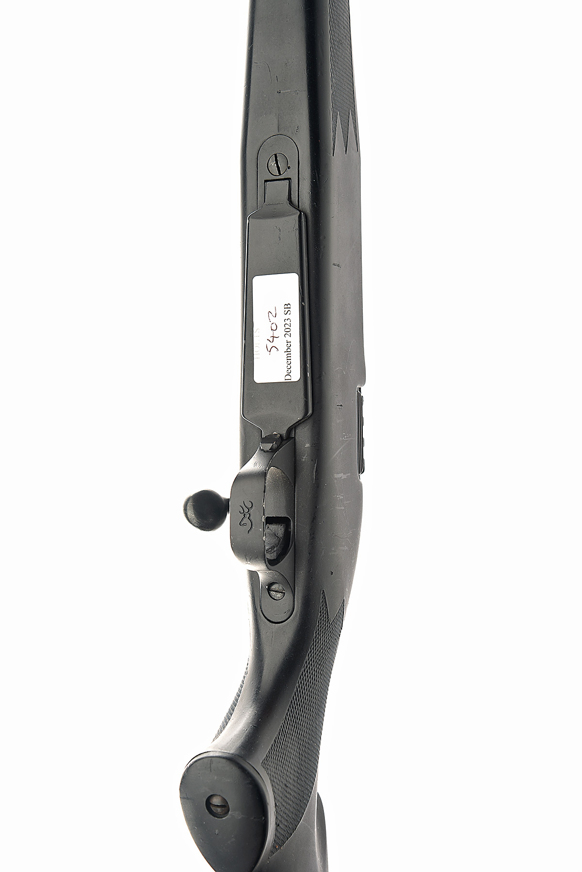 BROWNING .243 BOLT-MAGAZINE SPORTING RIFLE, serial no. 01349ZY351, circa 2012, 22in. unsighted nitro barrel, threaded for sound moderator, scope rail, manual tang safety, hinged magazine, pistolgrip synthetic stock with recoil pad, sling eyes