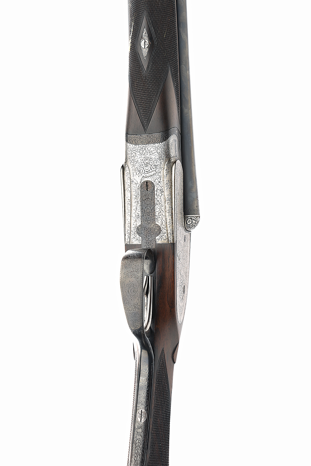 COGSWELL & HARRISON 12-BORE 'EXTRA QUALITY VICTOR' SIDELOCK EJECTOR, serial no. 44833, for 1912, 30in. nitro barrels, the rib engraved 'COGSWELL & HARRISON LTD. EXTRA QUALITY VICTOR. 141 NEW BOND ST. LONDON.', and gold-inlaid '2' at the breech end, 2 1/2in. chambers, bored approx. imp. cyl. and 1/4 choke, some external pitting, toplever gold-inlaid '2', automatic safety with gold-inlaid 'SAFE' detail, gold-inlaid cocking-indicators, fine acanthus scroll engraving with floral motifs, the fences carved in relief with stylised roses, brushed bright and reblued finish overall, 14 1/2in. figured replacement stock, weight 6lb. 9oz., in a canvas case
