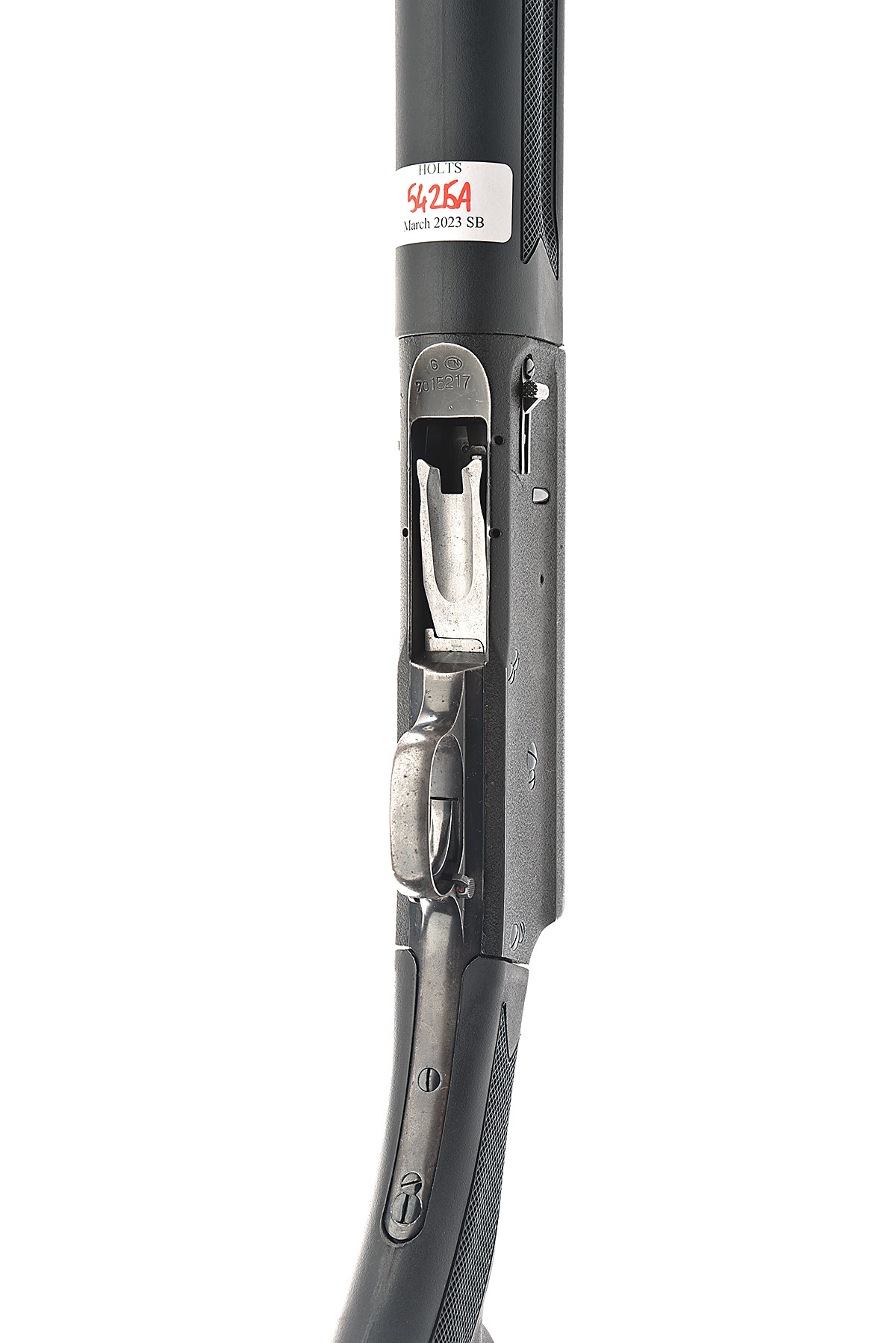 FABRIQUE NATIONALE 12-BORE 'AUTO-5' SEMI-AUTO SHOTGUN, serial no. 70 15217, for 1970, restricted magazine, 25 1/2in. nitro barrel with 7mm ventilated matt rib, 2 3/4in. chamber, bored approx. imp. cyl., manual push-button safety, magazine cut-off switch, action with black crackle finish, 14in. black synthetic pistolgrip stock including rubber recoil pad, weight 8lb. 7oz.