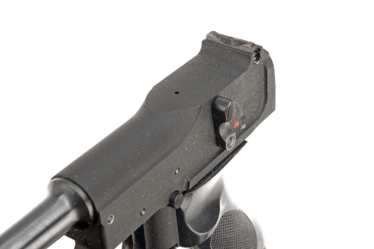 A BOXED .177 (BB) SLAVIA APP661 CO2-POWERED AIR PISTOL, serial no. 12990, with blued tapering 4 1/2in. barrel, blacked receiver with tube magazine, black plastic grip, appearing little used (untested) in its maker's card carton with papers and tool, box lid corners torn