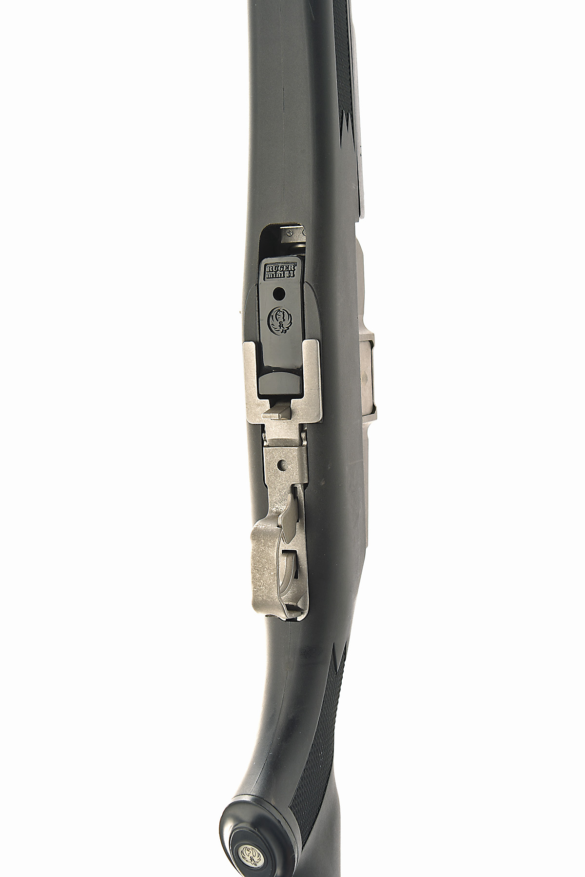 RUGER .223 REM. 'MINI 14 RANCH RIFLE' STRAIGHT-PULL BOLT-MAGAZINE SPORTING RIFLE, serial no. 195-97816, for 1999, 18in. nitro barrel, ramped fore-sight, receiver with folding open rear sight, manual safety, detachable box magazine, synthetic pistolgrip halfstock, 13in. pull including rubber recoil pad, weight 6lb. 12oz.