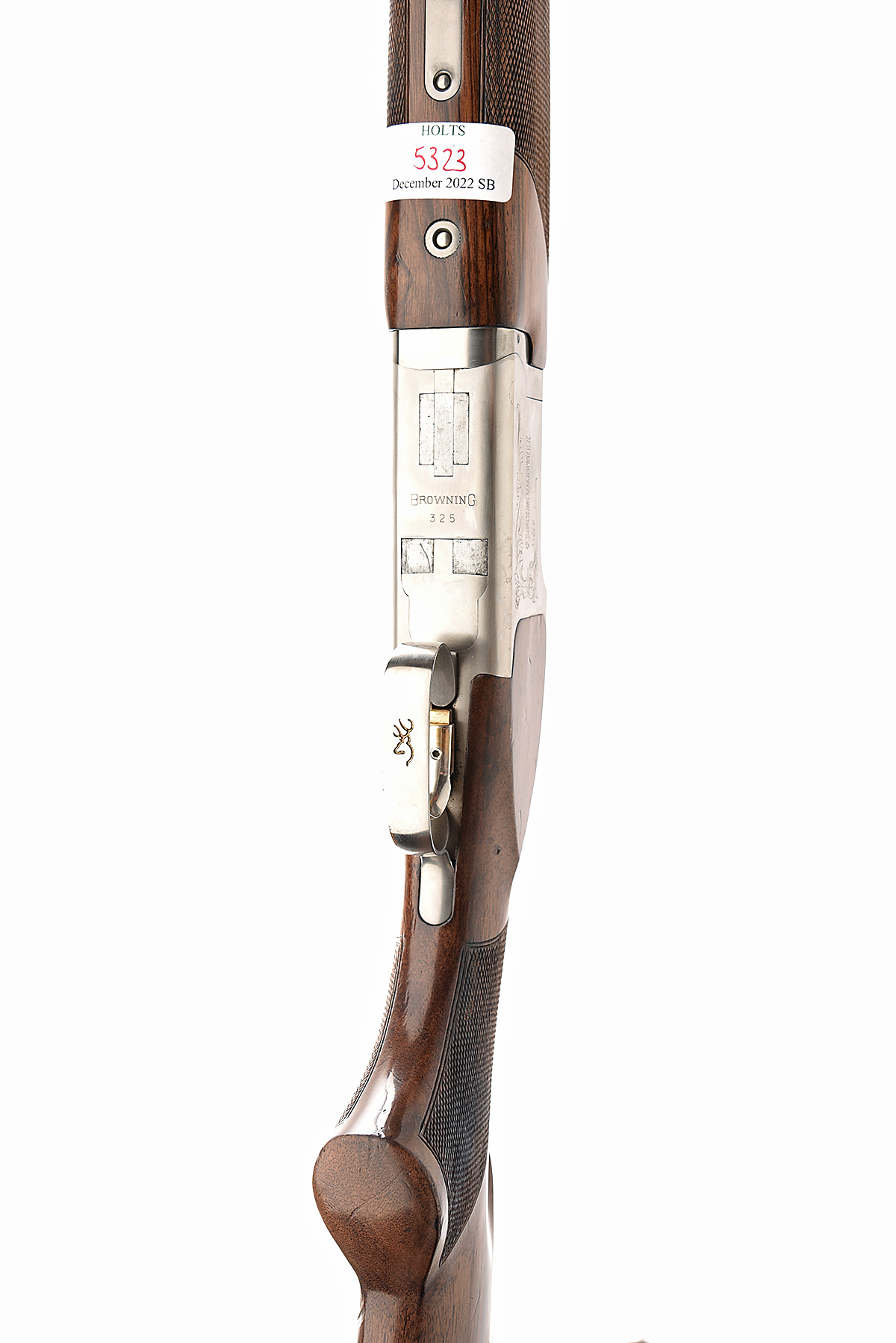 BROWNING 12-BORE '325 SP' SINGLE-TRIGGER OVER AND UNDER EJECTOR, serial no. 48148PN, for 1989, 28in. nitro barrels with 12mm ventilated matt top-rib, 2 3/4in. chambers, multichoke (no spares), hold-open toplever, automatic safety with integral barrel-selector switch, adjustable gold-washed trigger, partial acanthus scroll engraving, 14 1/2in. pistolgrip stock including 1 1/8in. rubber recoil pad, weight 7lb. 7oz.