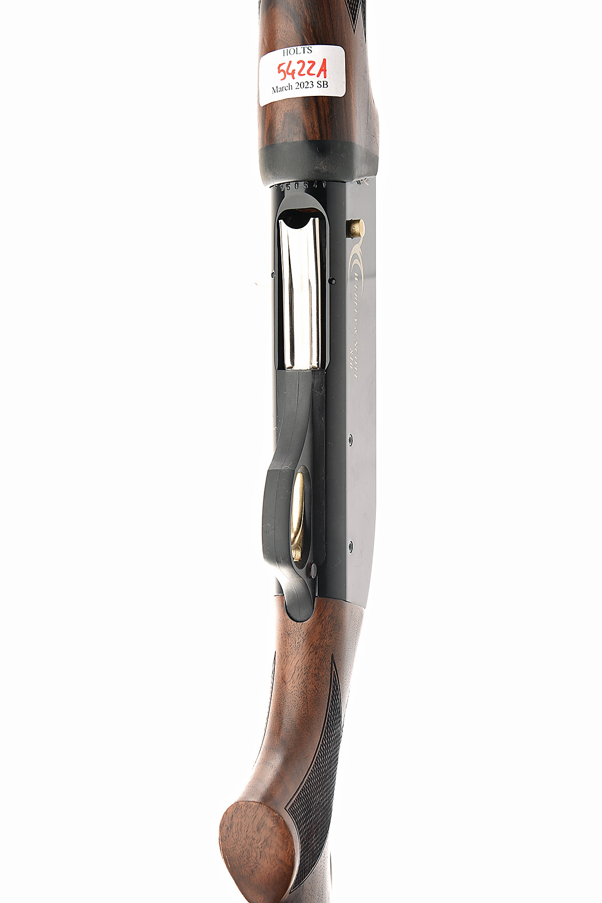 WEBLEY & SCOTT 12-BORE (3IN.) 'MODEL 810' SEMI-AUTO SHOTGUN, serial no. 7750541, circa 2006, restricted magazine, 28in. nitro barrel with 6mm ventilated matt rib, 3in. chamber, multichoke (no spares), manual push-button safety, gold-washed trigger, plain blacked action, 14 1/2in. figured pistolgrip stock including rubber recoil pad