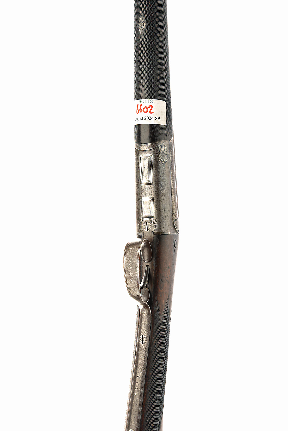 E. WILSON - NORWICH 16-BORE SINGLE-BARRELLED TOPLEVER HAMMERGUN, serial no. 1356, circa 1896, 29 1/2in. nitro reproved damascus barrel (in 2024), with faceted breech-end, the top flat engraved 'E. WILSON. NORWICH.', 2 1/2in. chamber, bored approx. imp. cyl. choke, rebounding back-action sidelock, border engraving, 14 1/4in. stock including steel buttplate. Hackett-type snap-on fore-end