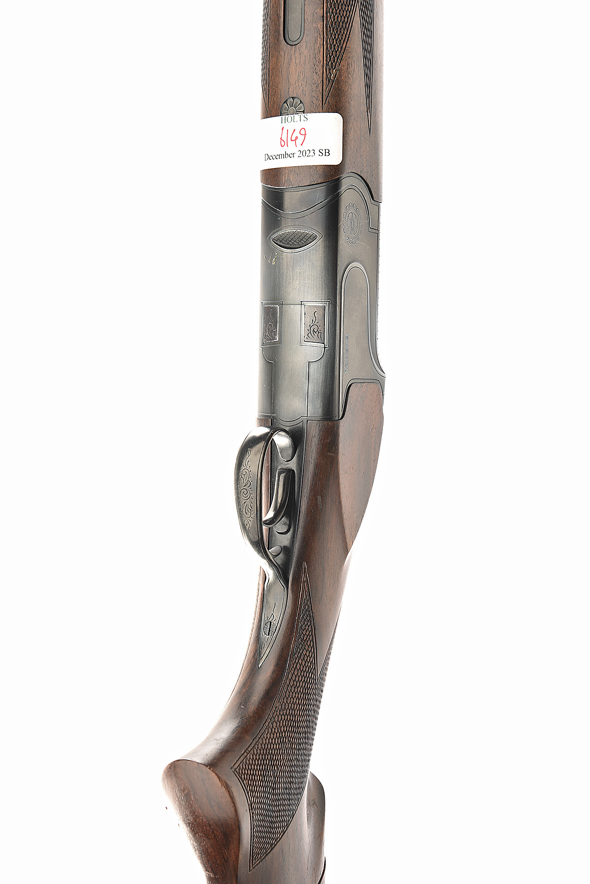 HUGLU 12-BORE 'EUROPA' SINGLE-TRIGGER OVER AND UNDER EJECTOR, serial no. 03S14636, for 2003, 32in. nitro reproved (in 2023) barrels with 7mm ventilated matt top-rib, no mid-rib, 2 3/4in. chambers, bored approx. 1/2 and 3/4 choke, hold-open toplever, manual safety with integral barrel-selector switch, blacked action, 14 1/2in. figured pistolgrip stock with adjustable comb, including rubber recoil pad, weight 7lb. 12oz.