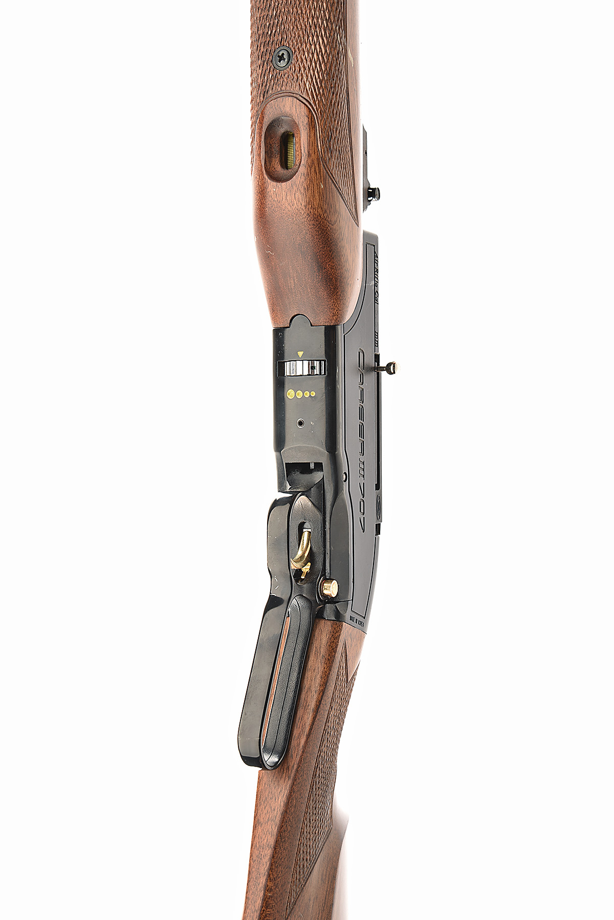 A .22 PRE-CHARGED PNEUMATIC AIR-RIFLE, SIGNED SHIN SUNG MODEL CAREER III 707 serial no. 551983,