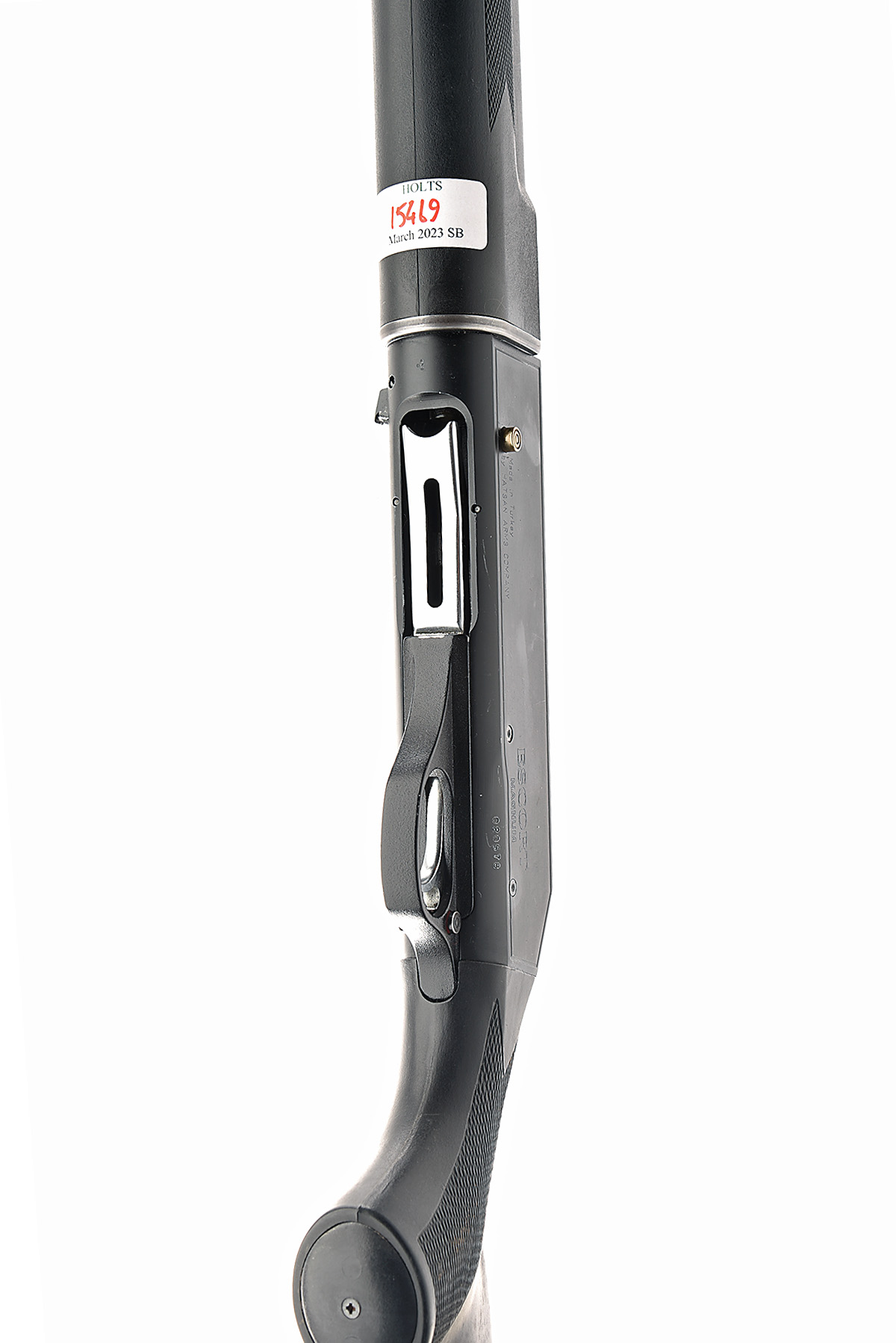 HATSAN 12-BORE (3IN.) 'ESCORT MAGNUM' SEMI-AUTO SHOTGUN, serial no. 020578, circa 2003, restricted magazine, 28in. nitro barrel with 7mm ventilated matt rib, 3in. chamber, multichoke (no spares), manual push-button safety, magazine cut-off switch, 13 3/4in. synthetic pistolgrip stock including ventilated rubber recoil pad, the whole in matt black finish