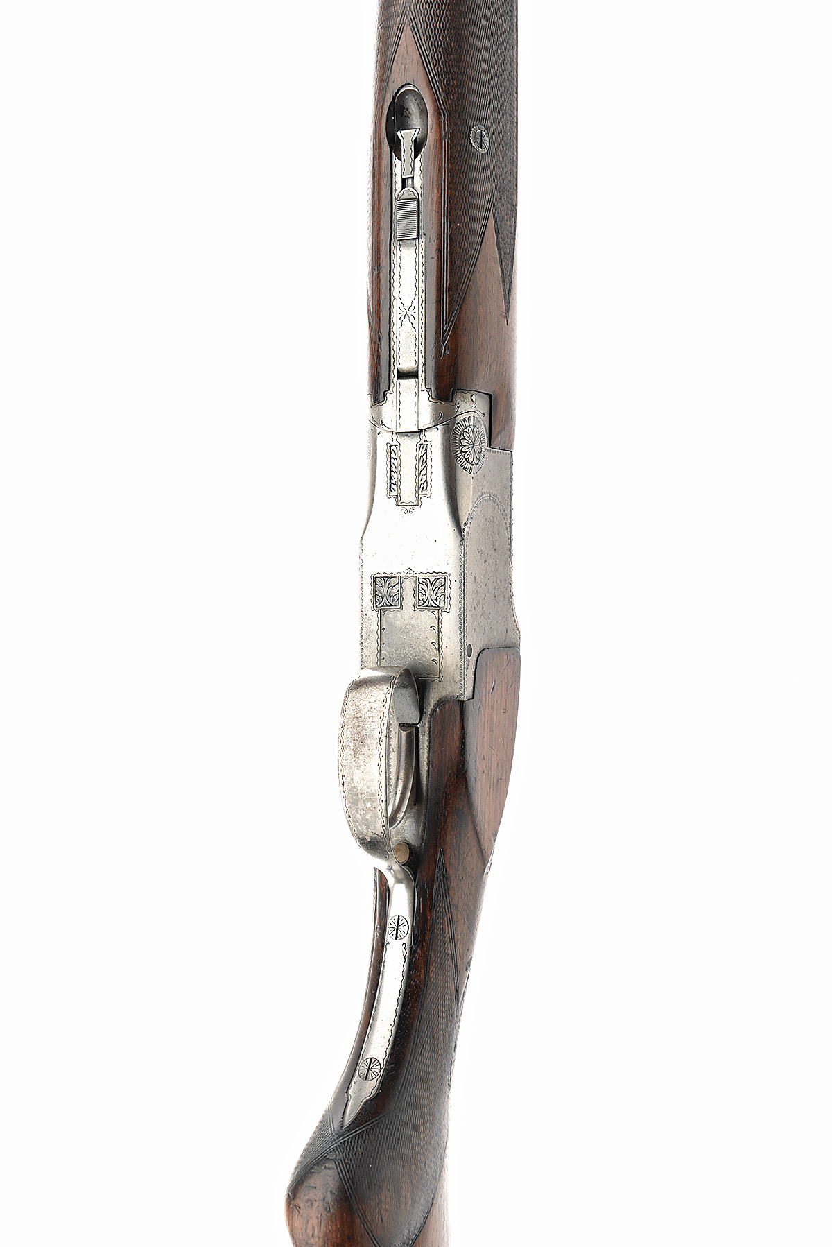 FABRIQUE NATIONALE 12-BORE SINGLE-TRIGGER OVER AND UNDER EJECTOR, serial no. 11643 S3, for 1963, 26 1/4in. nitro barrels with 8mm ventilated matt top-rib, 2 3/4in. chambers, bored approx. imp. cyl. in both, hold-open toplever, manual safety with integral barrel selector switch, gold-inlaid 'O', 'U', and 'S' detail, border engraving, 13 1/2in. semi-pistolgrip stock including buttplate, weight 7lb. 1oz.